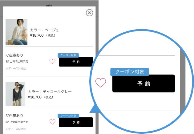 販売開始や再入荷、SALEのお知らせがメールやアプリ、LINEで届きます。
