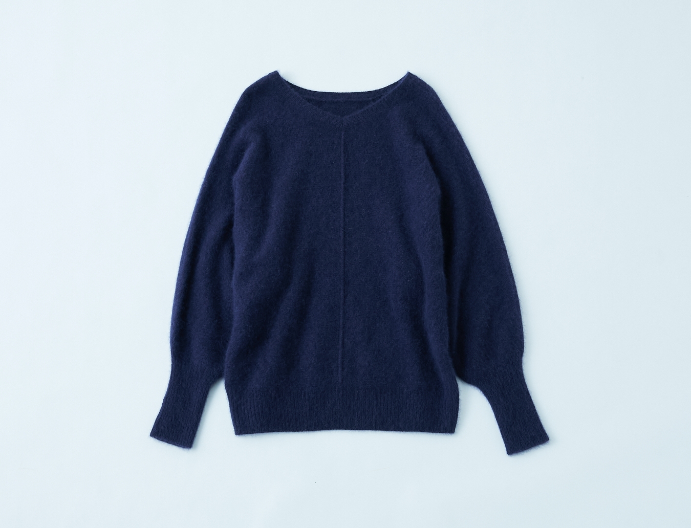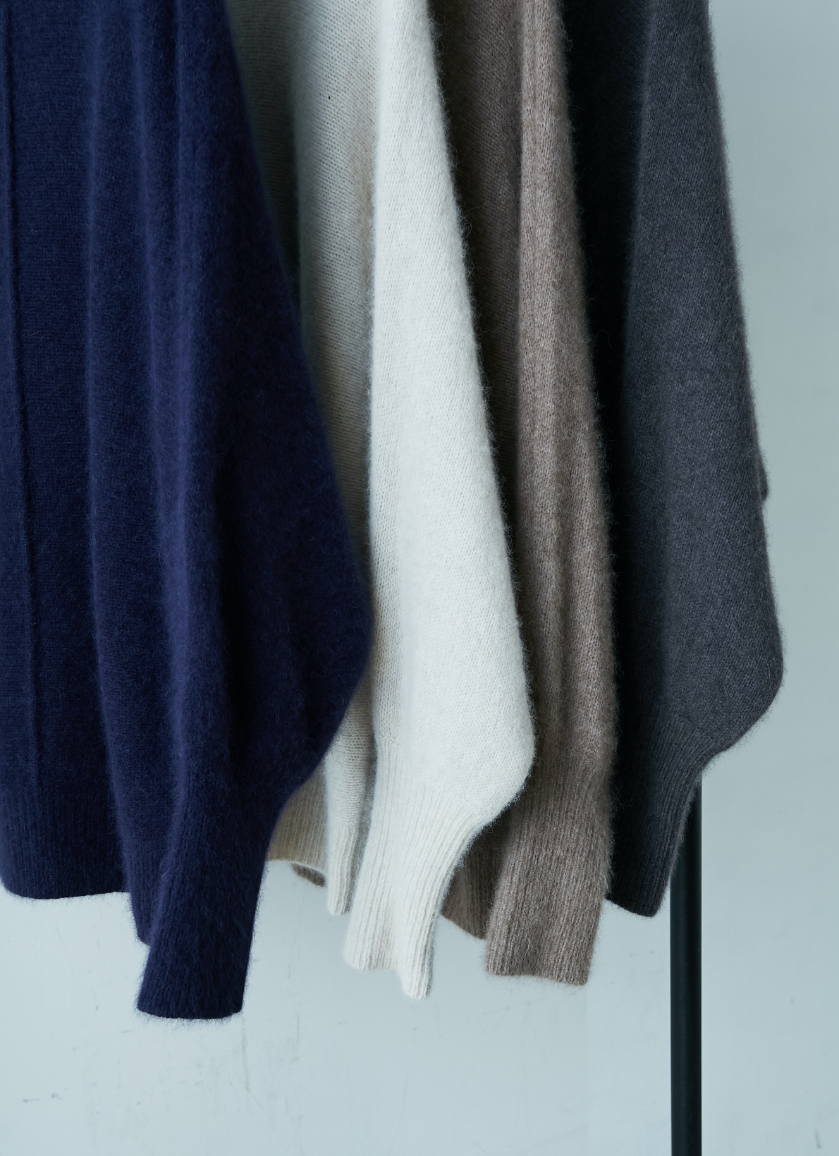程よいゆとりのあるシルエットで上品な雰囲気に仕上げました。軽く保温性の高い素材で、ふんわりとした優しい手触りが特徴で、ドルマンデザインが気になるお腹や腰周り、二の腕をカバー。