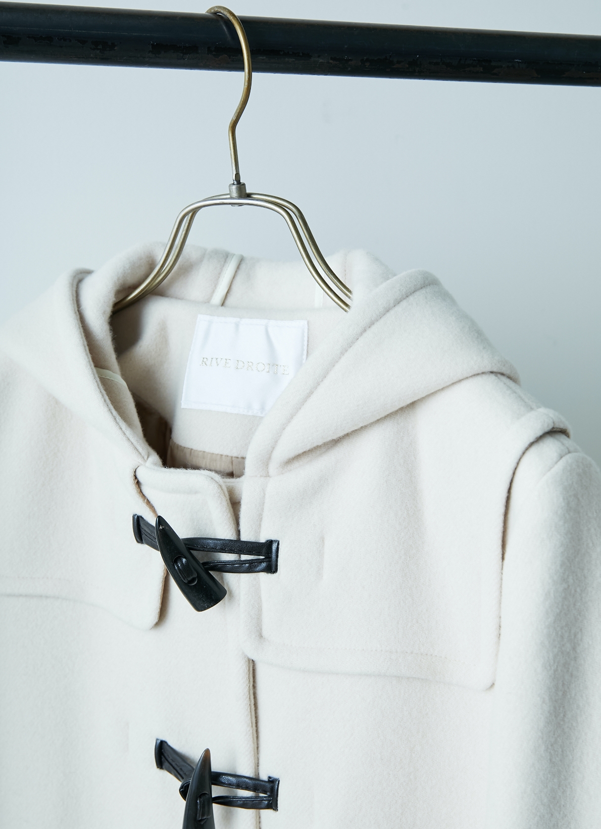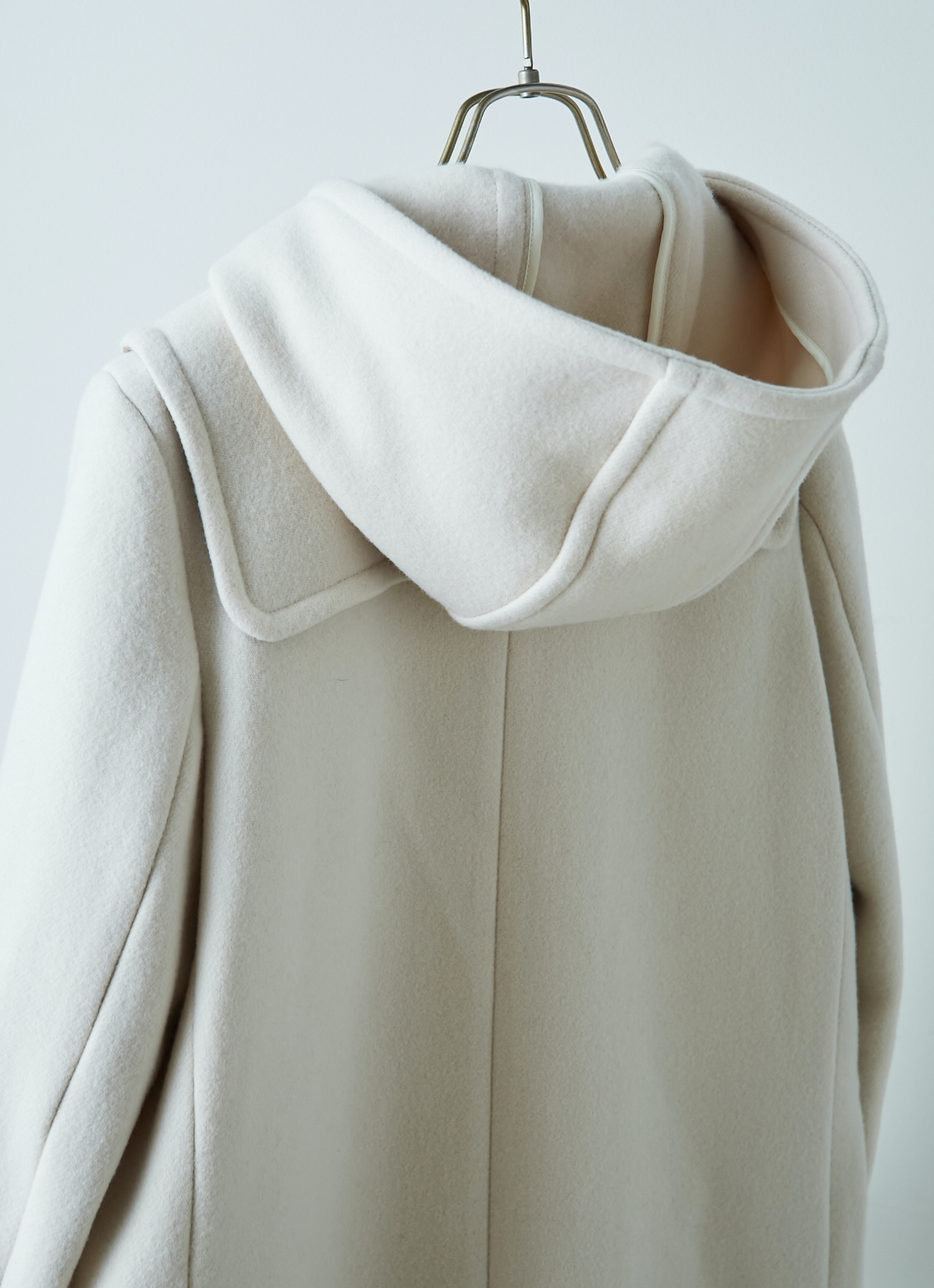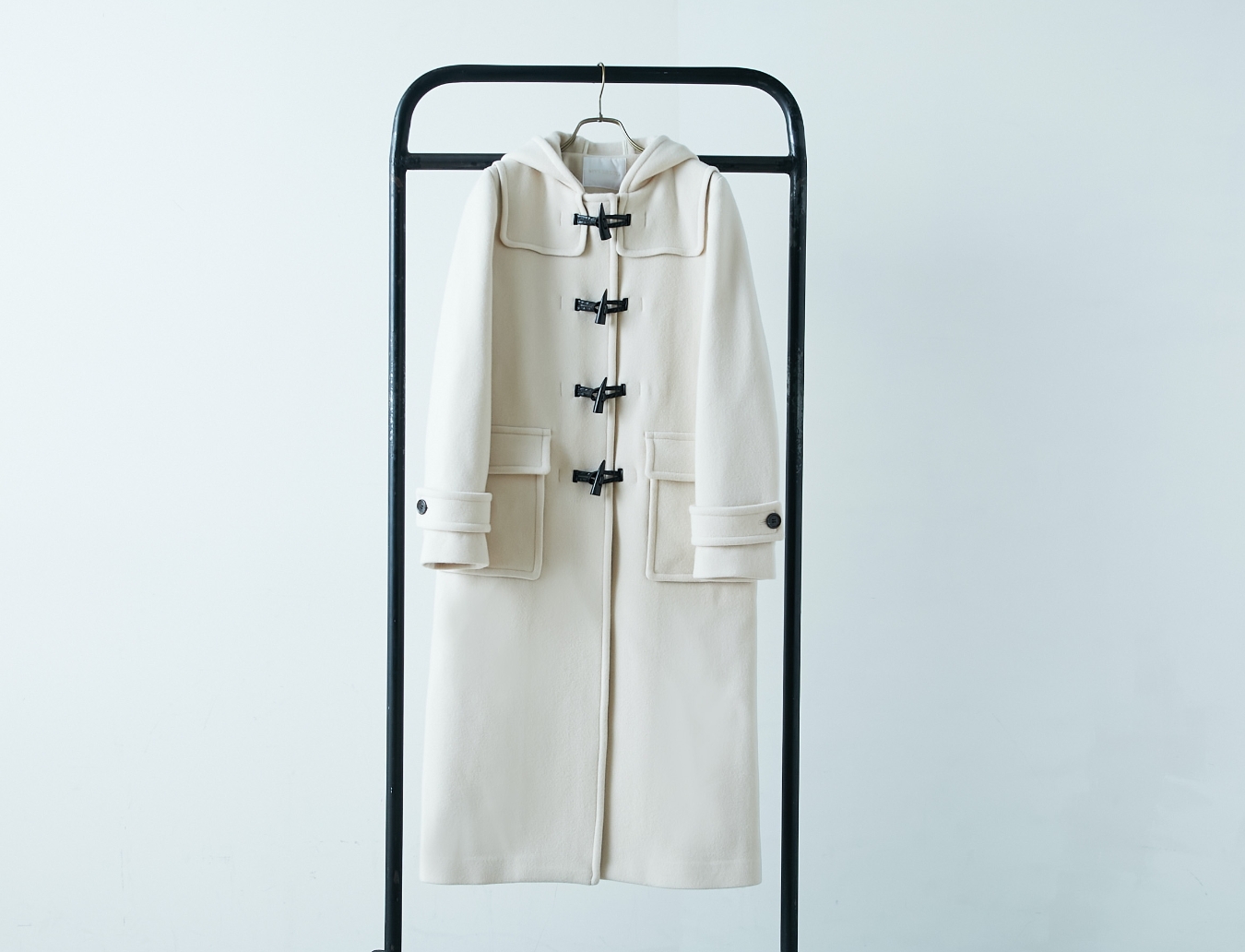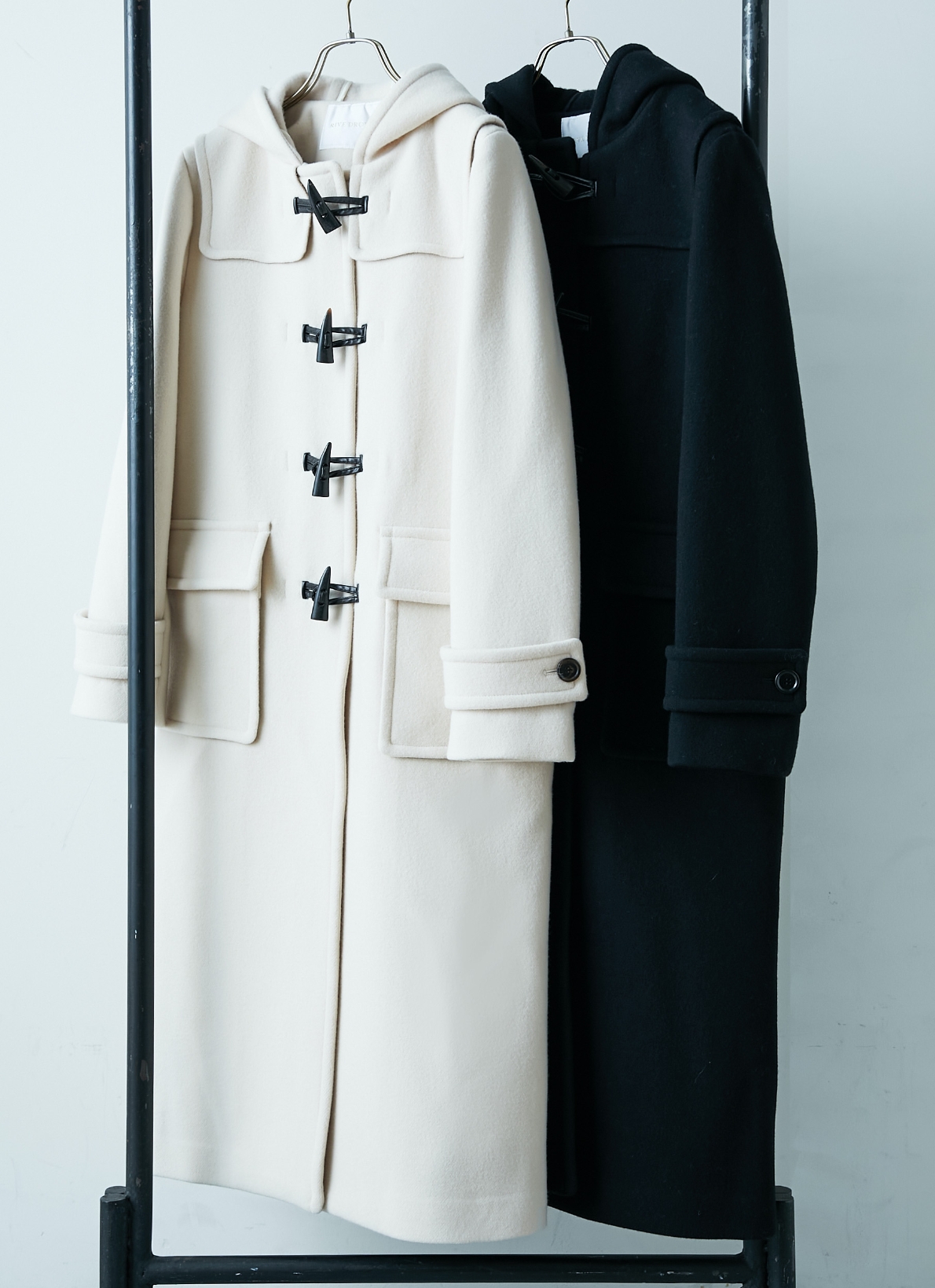 ウール混の滑らかなタッチのダブルクロスという二重織りの生地を使用しており、暖かな1枚。なんといってもすっきりとした女性らしいシルエットが人気の理由!