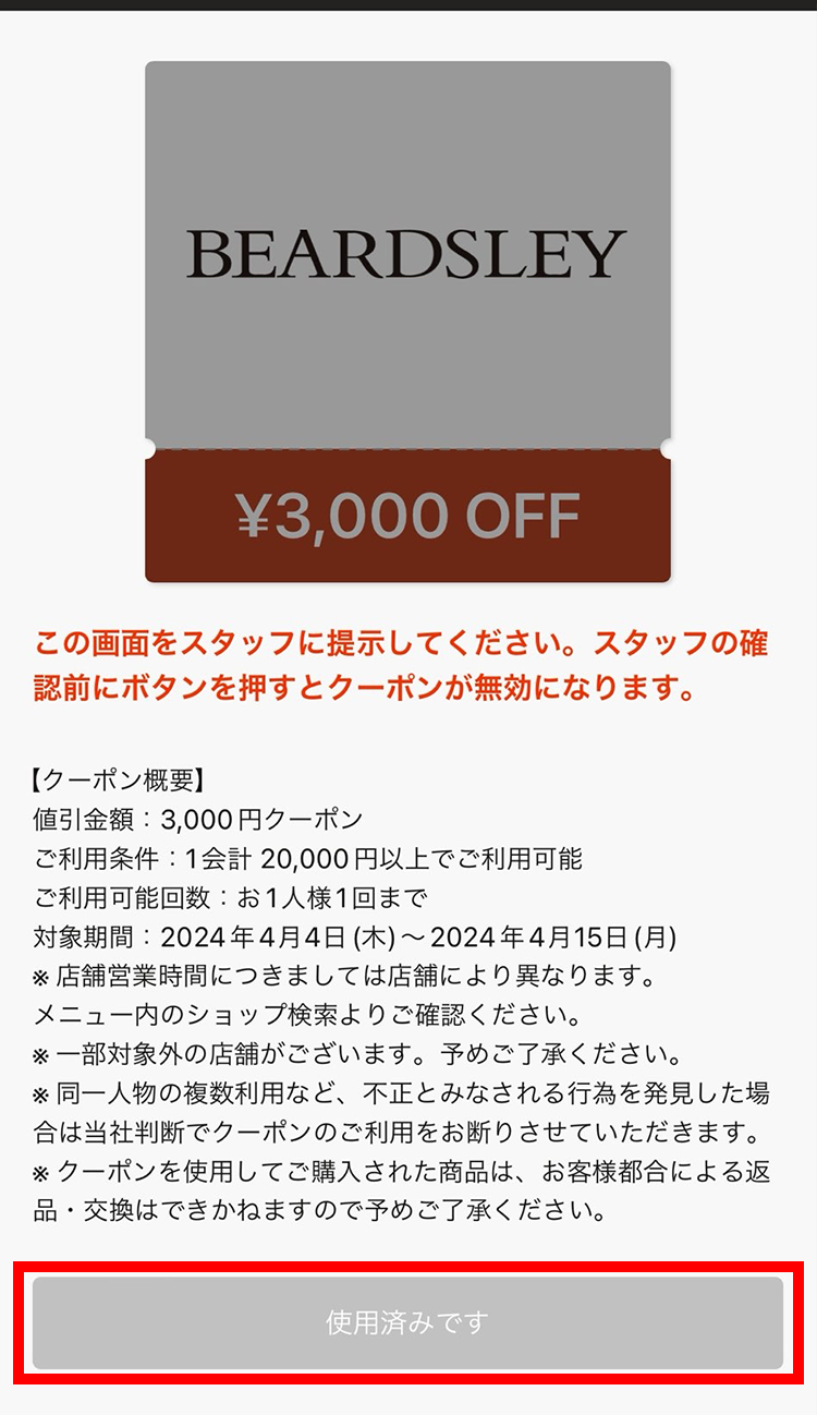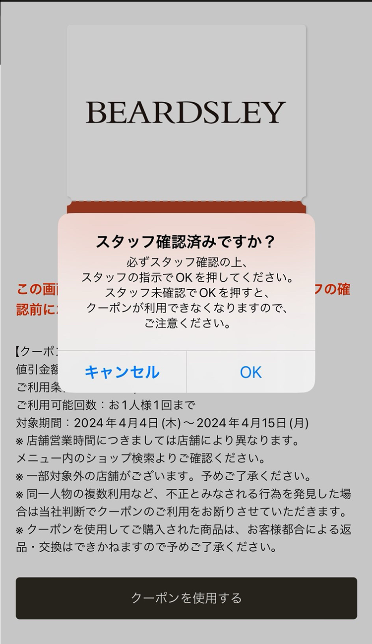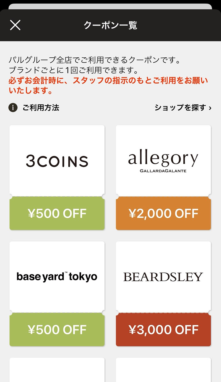 店舗クーポン使用方法