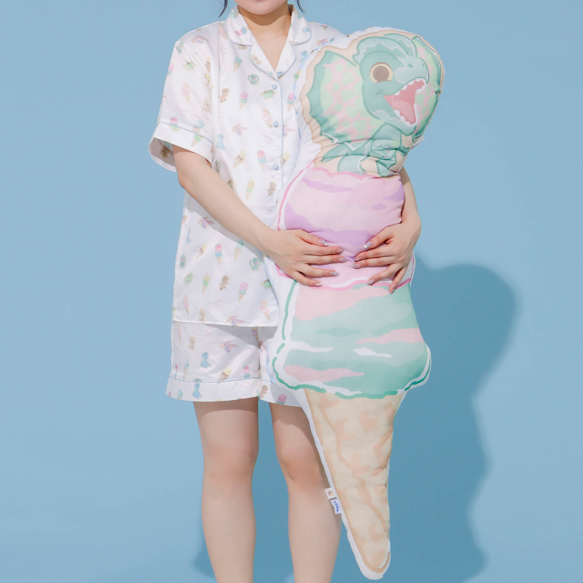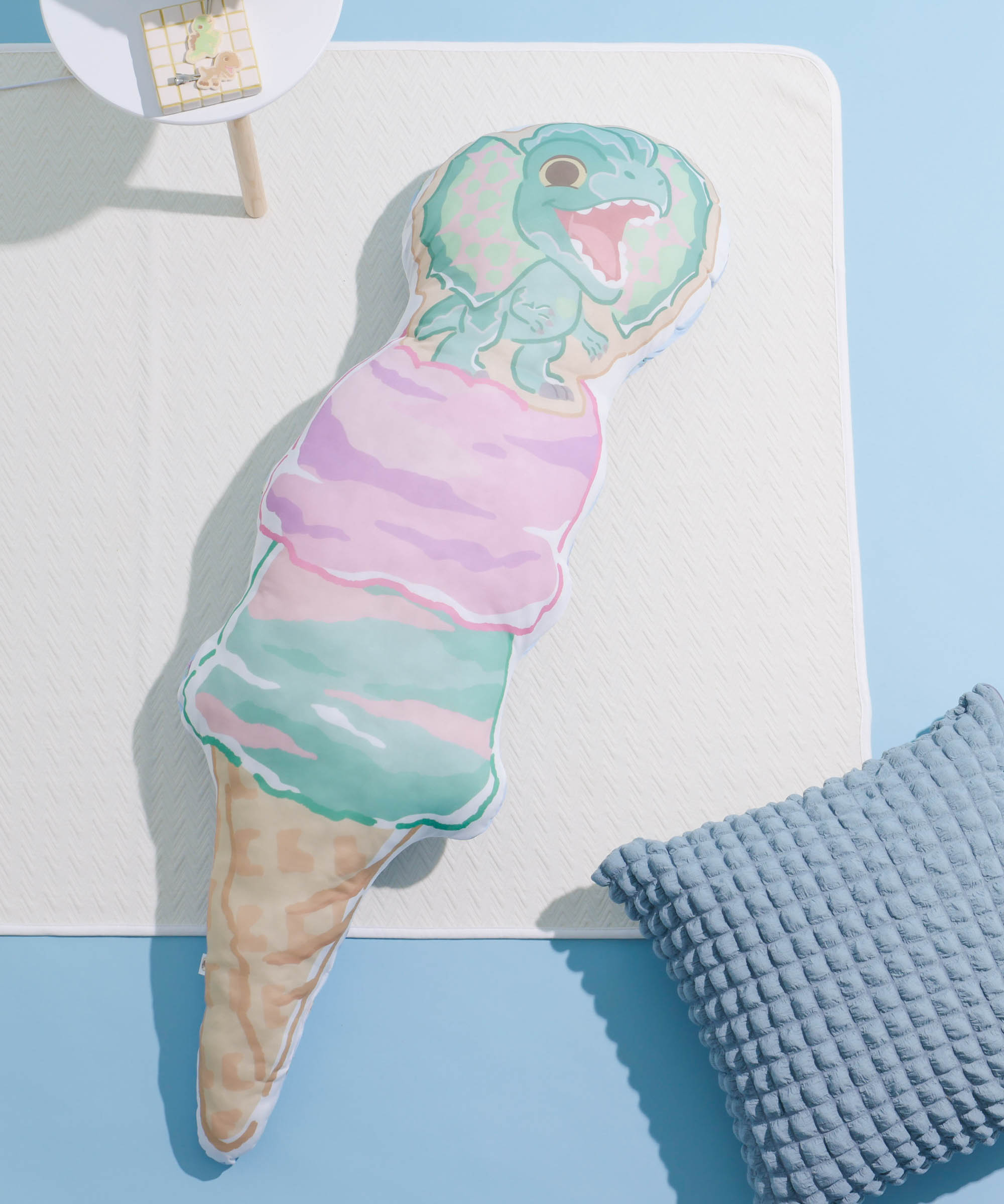 アイスクリームの上に恐竜のアイシングクッキー