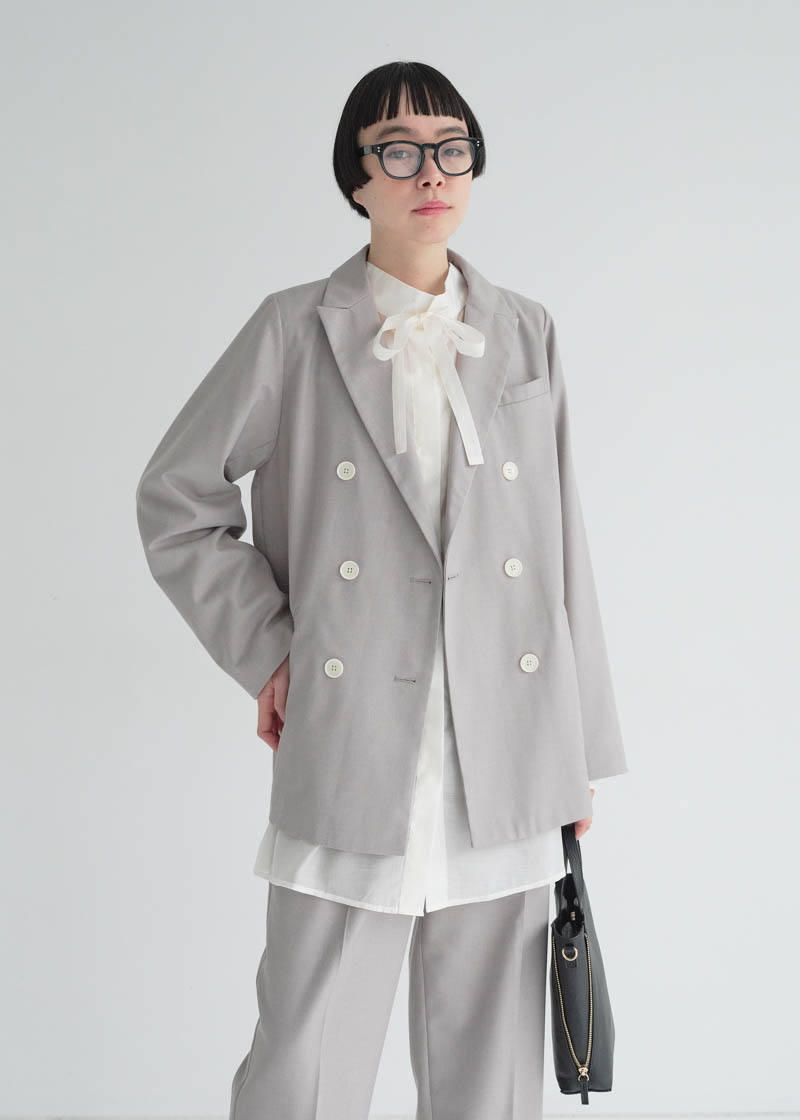 昨年も大人気だったテーラードジャケットをアップデート。今期、ネイビーカラーには金ボタンを採用し、よりスタイリッシュな印象に。定番のネイビーカラーに加えて、グレージュを新色としてご用意しました。程よくゆとりを持たせた落ち感のあるシルエットで、合わせるインナーを変えれば、シーンを選ばず、[ハレ]の日だけでなく、カジュアルなデイリー使いや通勤など幅広く着回せます。