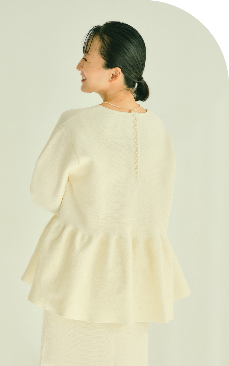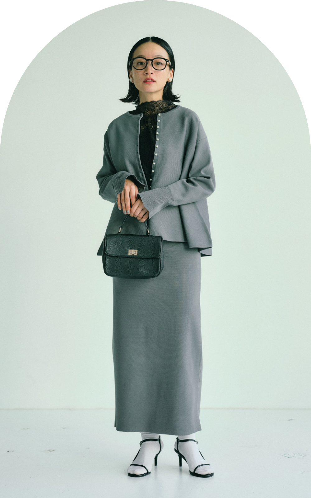 時代とともに進化を続けるセレモニーシーン。目立ちすぎず、かしこまりすぎず、普段使いもできるアイテムが支持されています。PUAL CE CINでは新たなセレモニー服としてニットアップを提案。同素材、同カラーのアイテムを4型展開し、セットで着るだけでお洒落でエレガントな印象に。