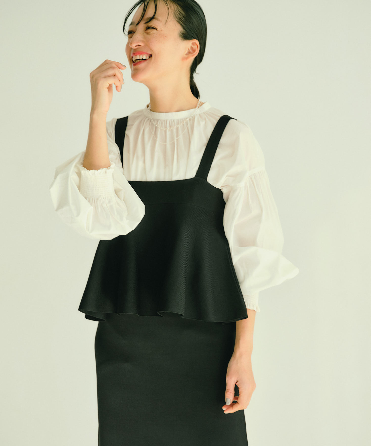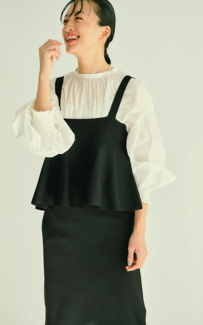 構築的なシルエットにパールボタンがデザインされた上品カーディガンやプルオーバー、大人の可愛さ引き立つビスチェにナロースカートを合わせるだけで”今どき”が詰まったきれい見えする【カセット服】は大注目です。