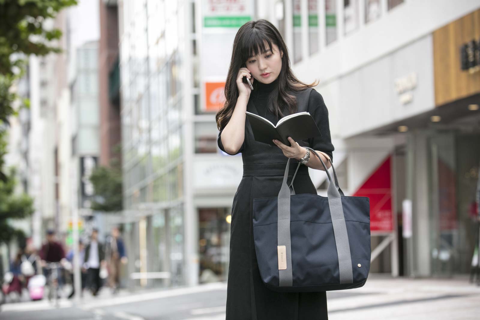 PCに、書類に、お弁当に。荷物の多い仕事シーンには大きめトートが大活躍。
