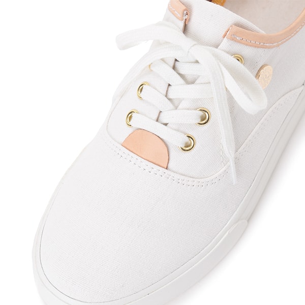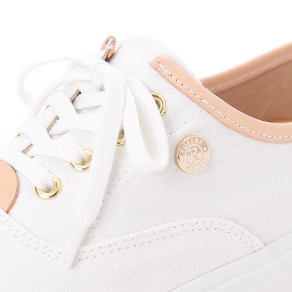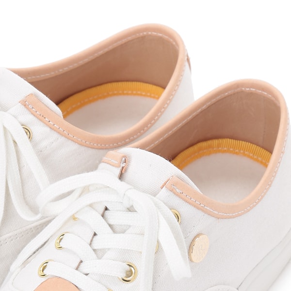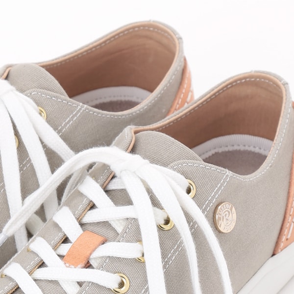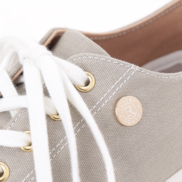 キャンバス素材を使用した、ベーシックな型のスニーカー。イタリア産のヌメ革を部分使いしたデザインで風合いを楽しめる他、ヒールカウンターにハンドステッチを施し、ベロ裏に豚革を使用するなど、ラシットのこだわりがたくさん詰まったアイテムに仕上がっています。