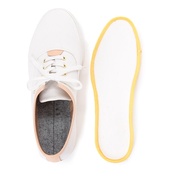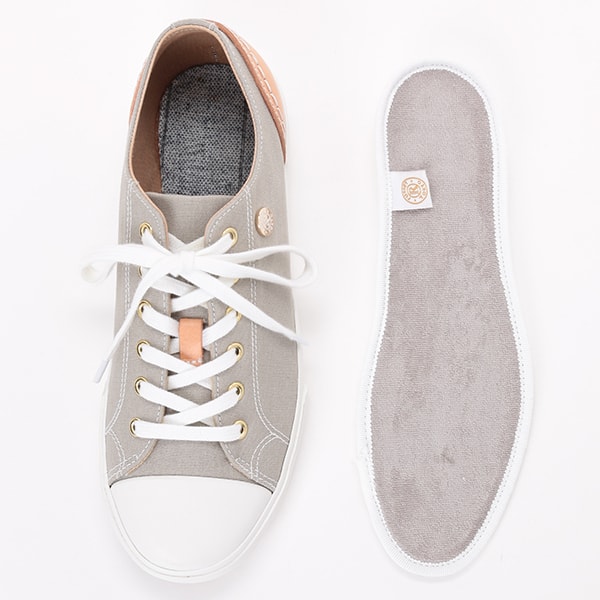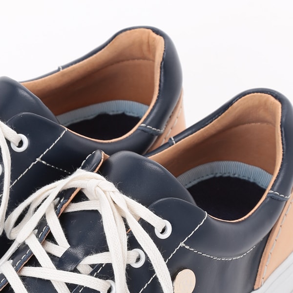 スニーカーには珍しい、イタリア産高級ヌメ革を使用し、風合いを楽しんでいただけるデザインや、手縫のステッチを施すなど遊びごごろも取り入れています。