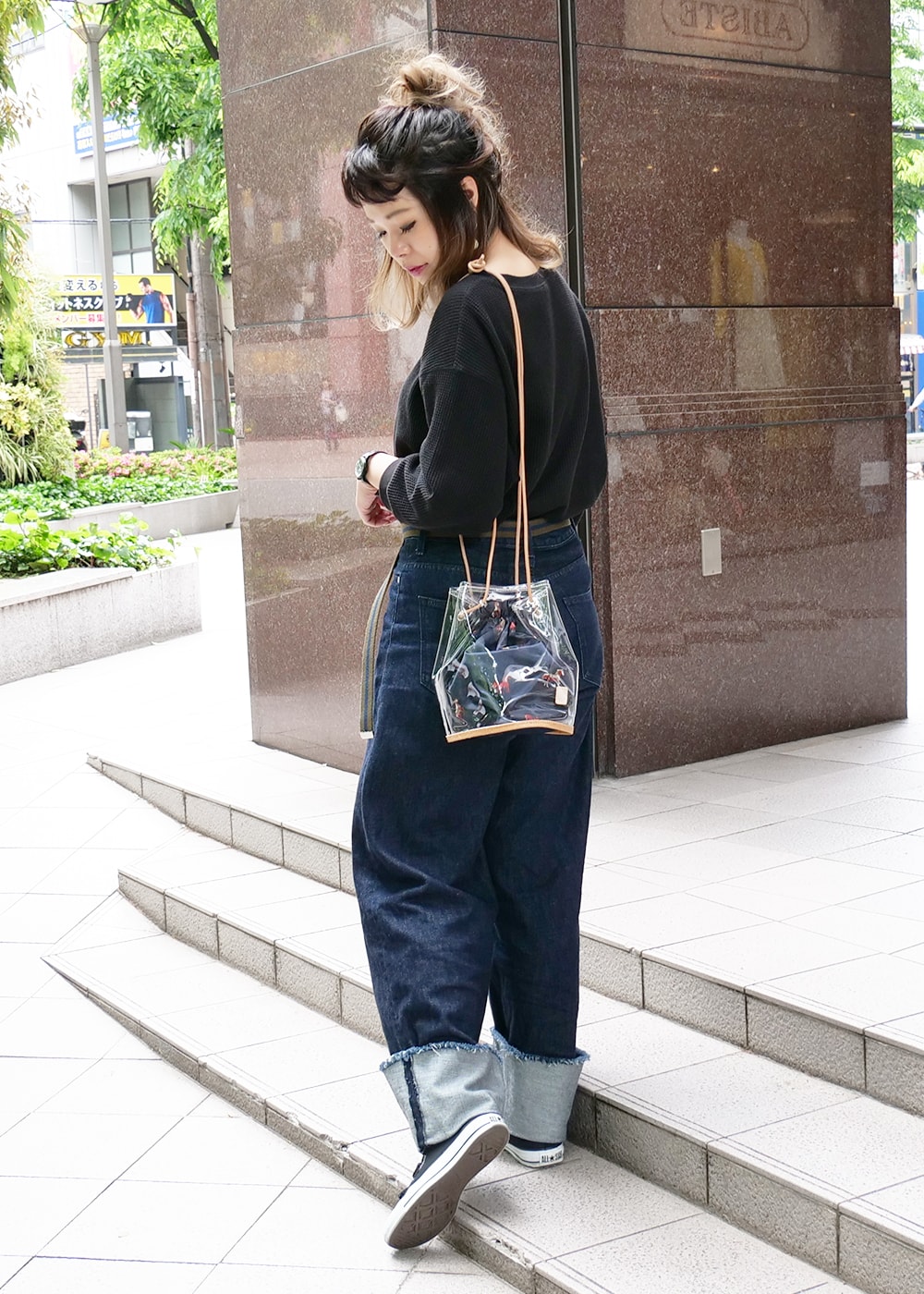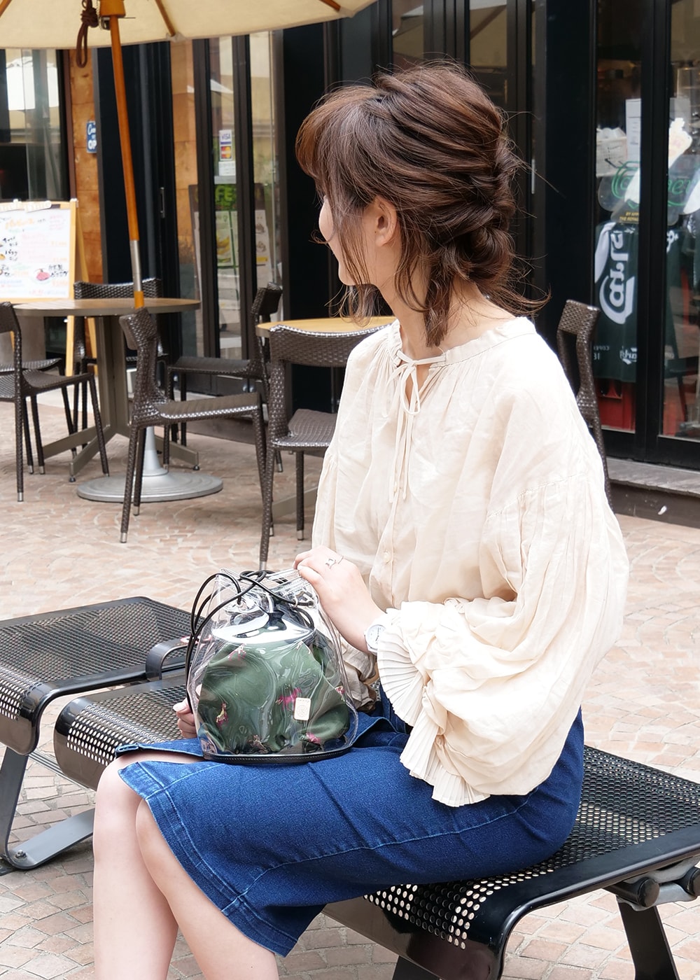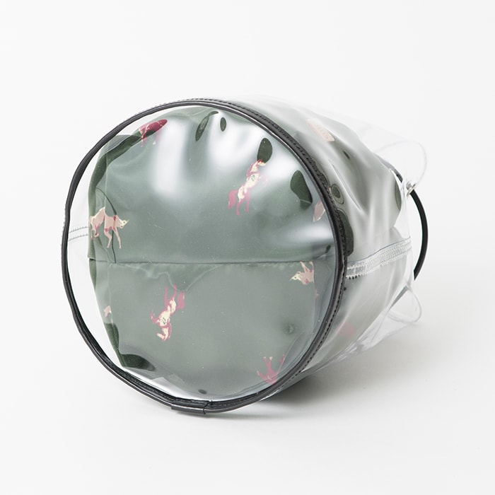底部分にもビニールを用いることでクリア感が増し、夏のコーディネートを引き立ててくれます!底マチは広めに設定しているので、見た目以上の収納性も嬉しいポイントです。