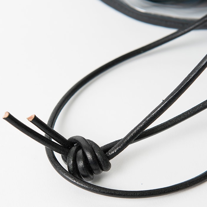 持ち手にはレザーを使用!パイピング部分と同カラーを採用することで統一感が生まれ、上品な印象を演出してくれます。長さは結び位置を変えることで、自分にピッタリの位置でお使いいただくことが出来ます。
