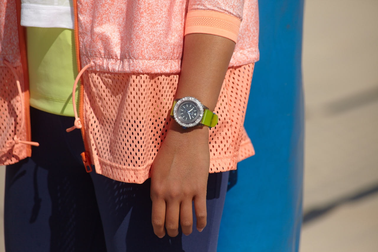 「試合の時も練習の時も時計は必需品。激しく動いても壊れないタフさがあることと、防水であることはマスト。汗をかくし、試合後にアイシングのために海やシャワーを浴びるので。その点でラフウォッチは私にぴったりの時計だと思いました。時計って気分を高めるアイテムでもあるんです。こんなビビットな色だったら、テンションも上がりますよね。」