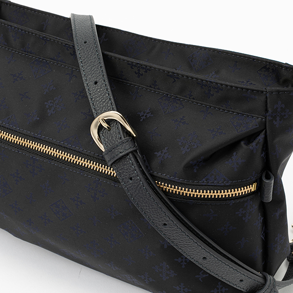 天ファスナー仕様使用中に気になる防犯面も、天ファスナーを採用しているので安心!さらに付属のベルトを装着できる金具がついているので、斜め掛けとしてもお使いいただけるのもポイント。