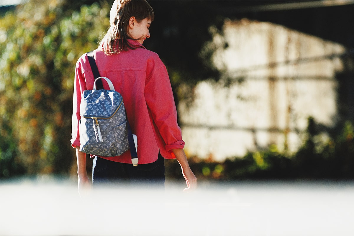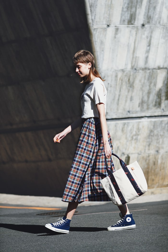 ラシットのナイロン生地にデニムのテクスチャーをプリント。一見デニムのうようだけどナイロン素材なので軽量で持ちやすく、色落ちの心配もなし。装いにカジュアルな抜け感を加えたい時に重宝します。