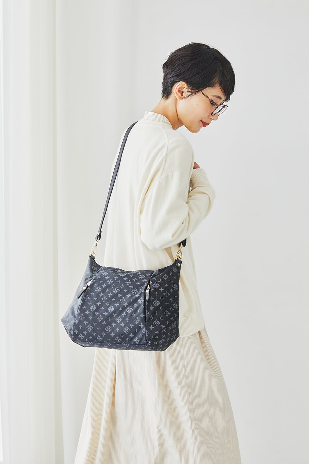 長財布も入る収納力や豊富なポケット、2way仕様で、身軽なお出かけスタイルを叶えます。