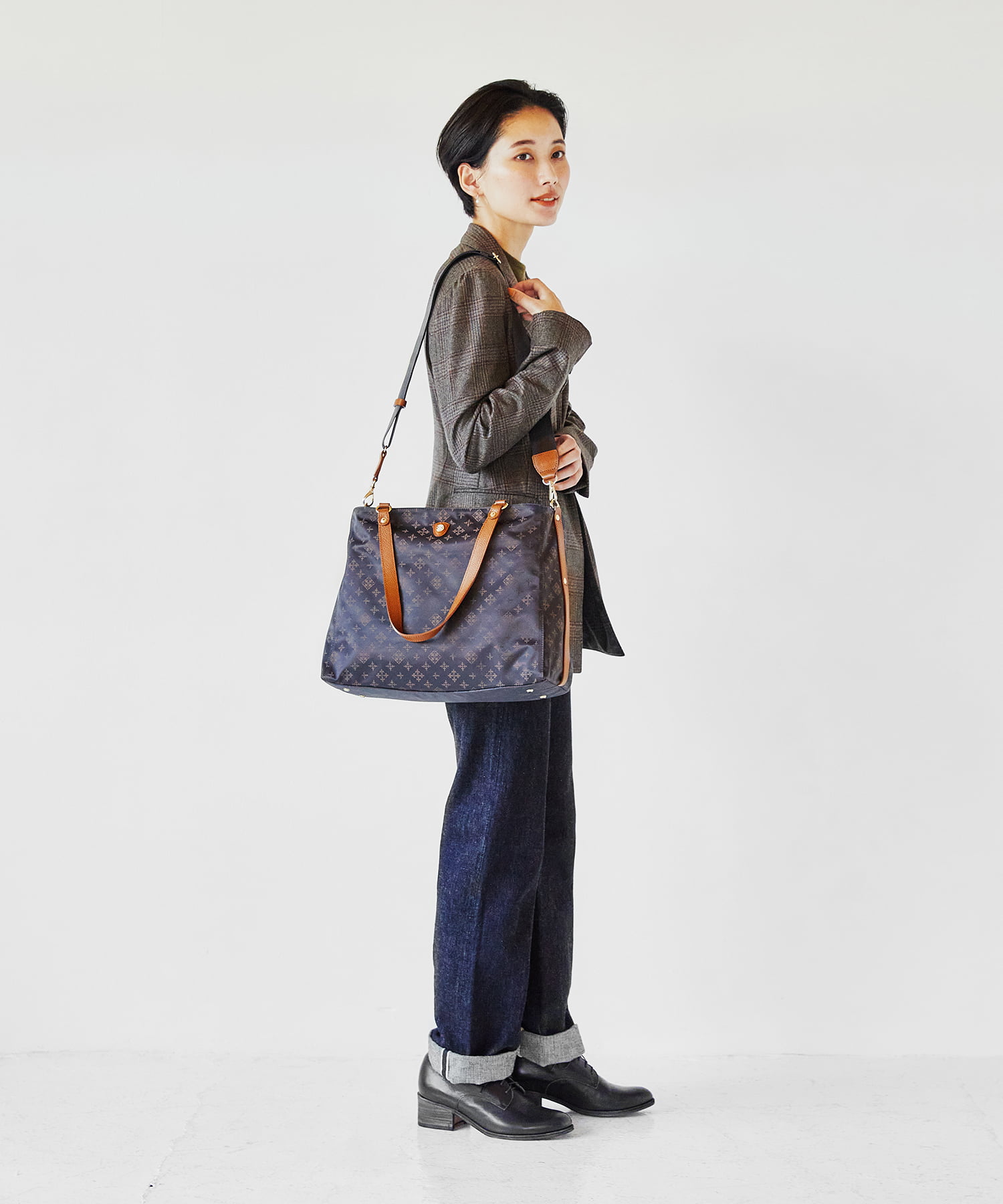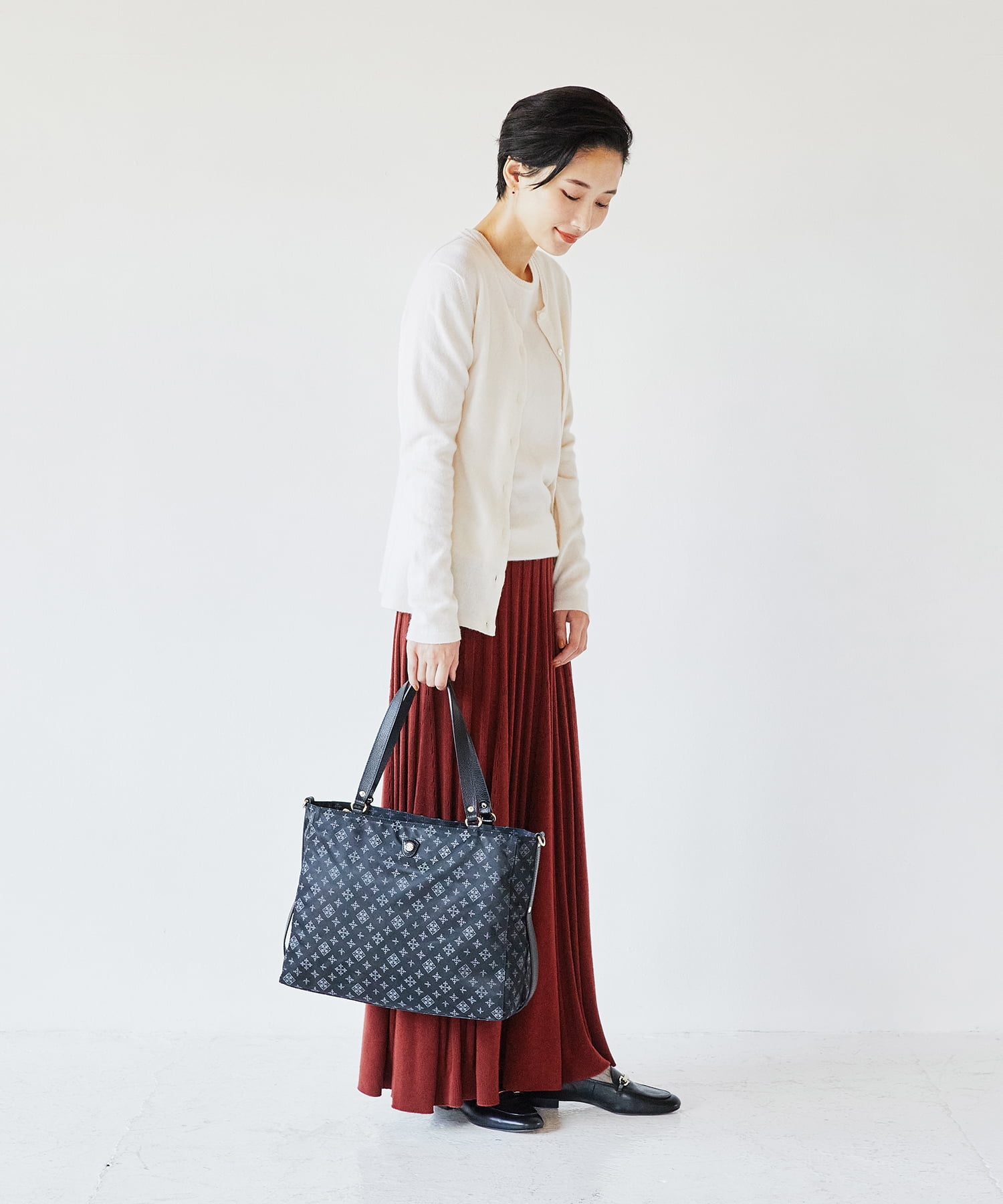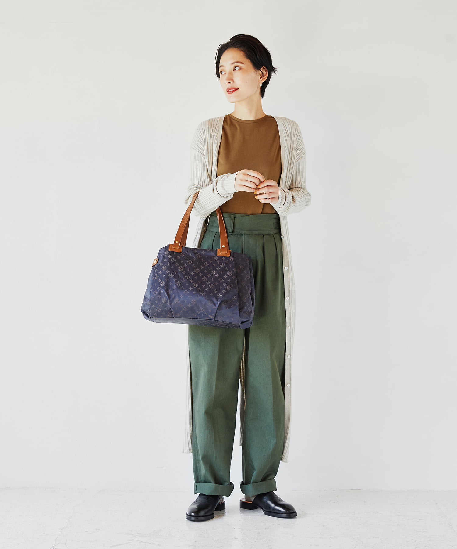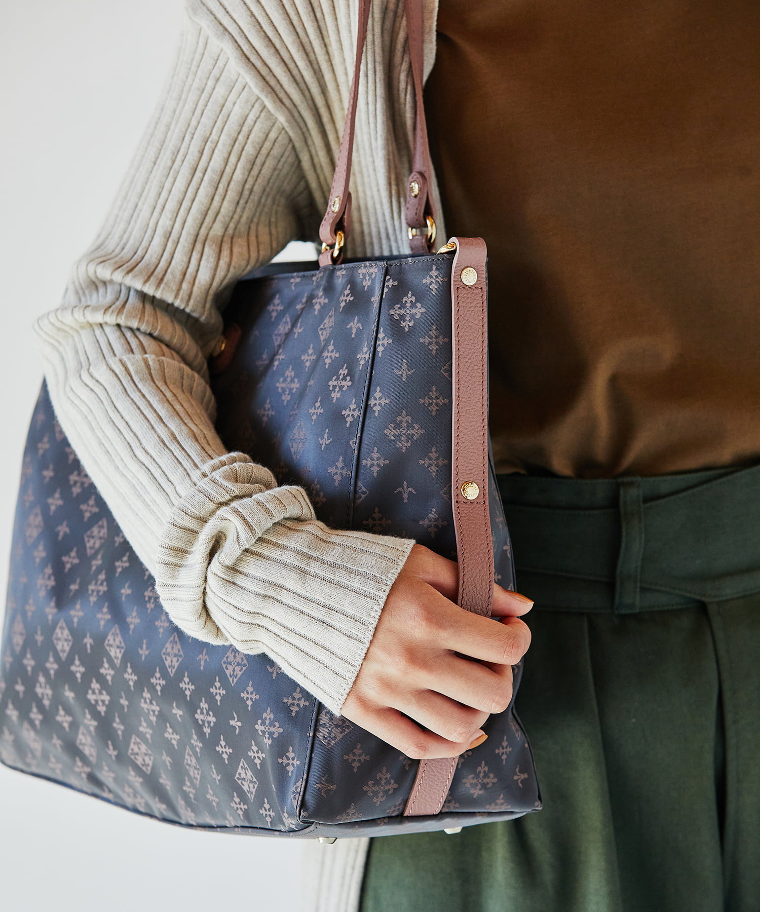 肩掛けもできるから通勤シーンにもおすすめ。