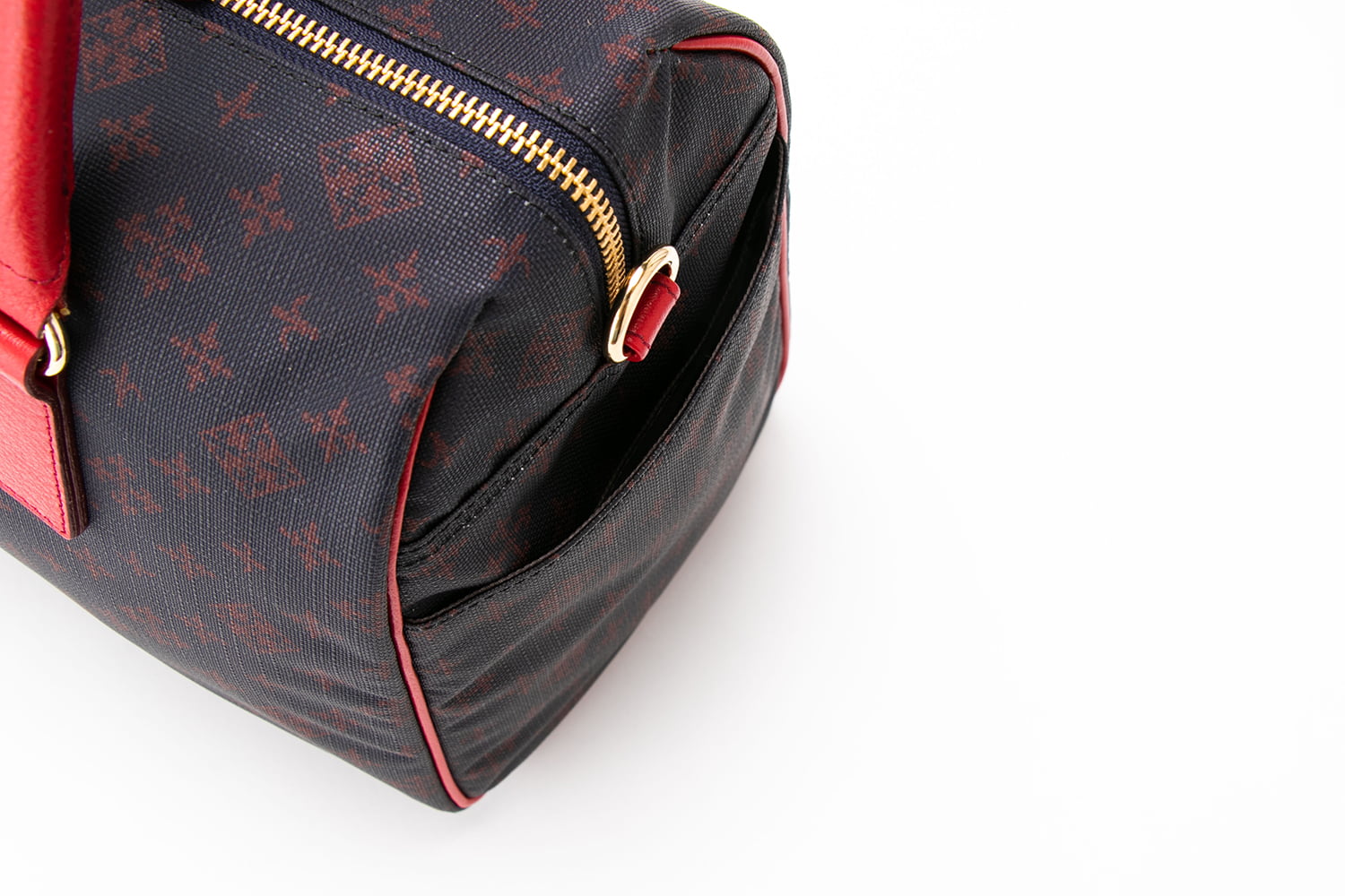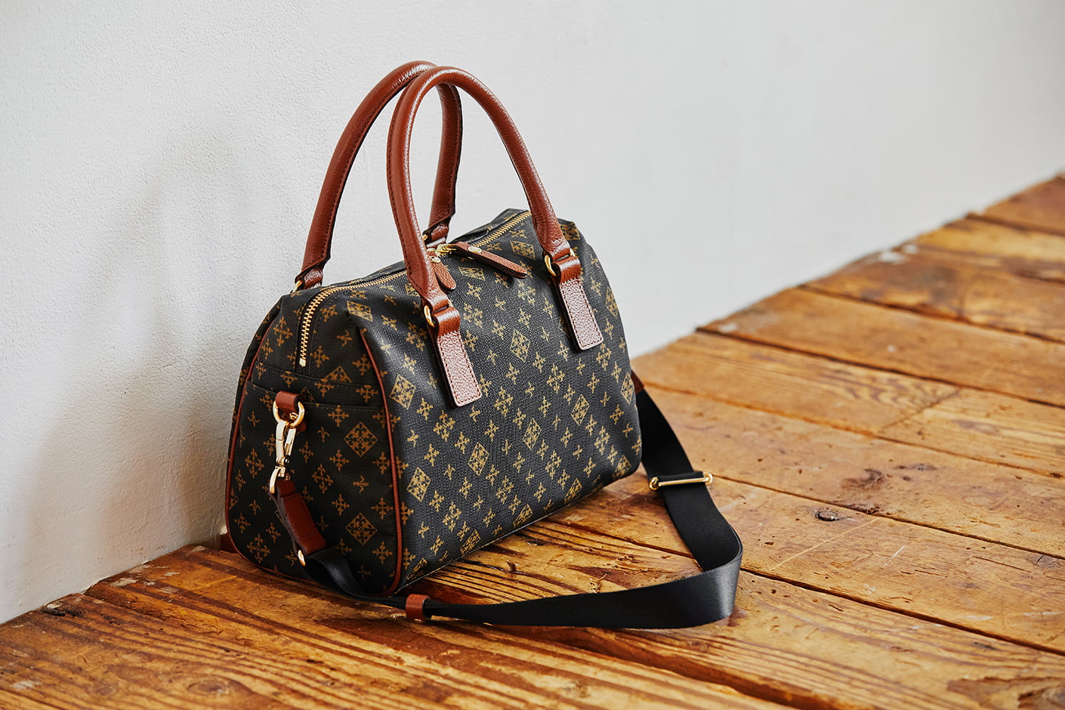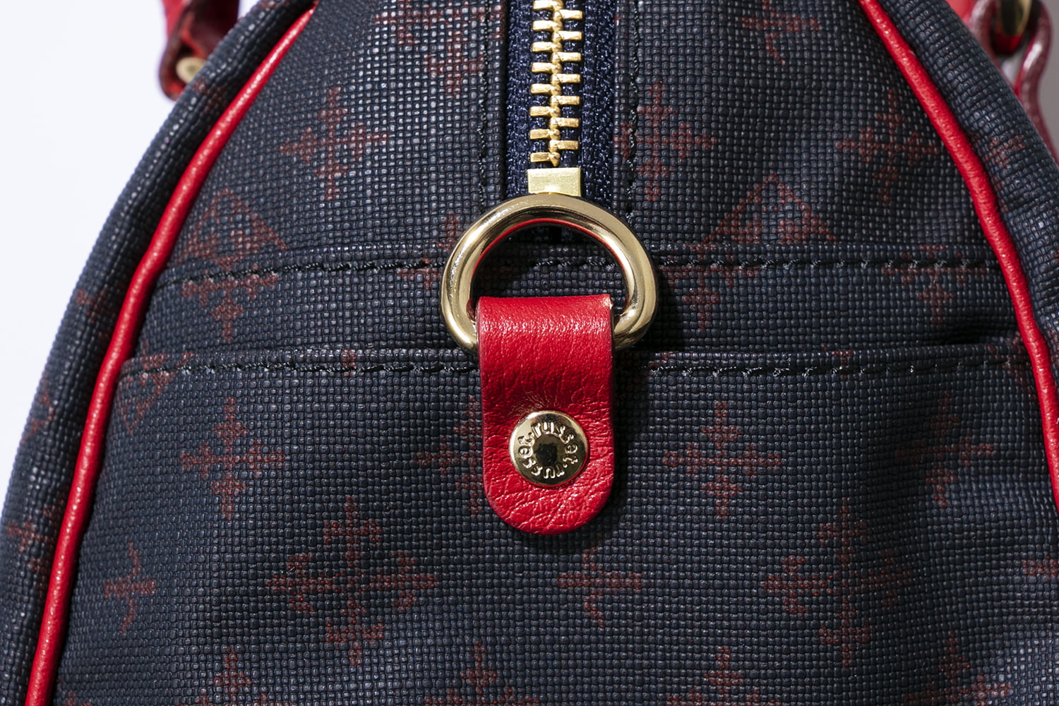 定番のナイロンジャガードの表面をPVC加工(型押し)することで、レトロで高級感のある仕上がりに。