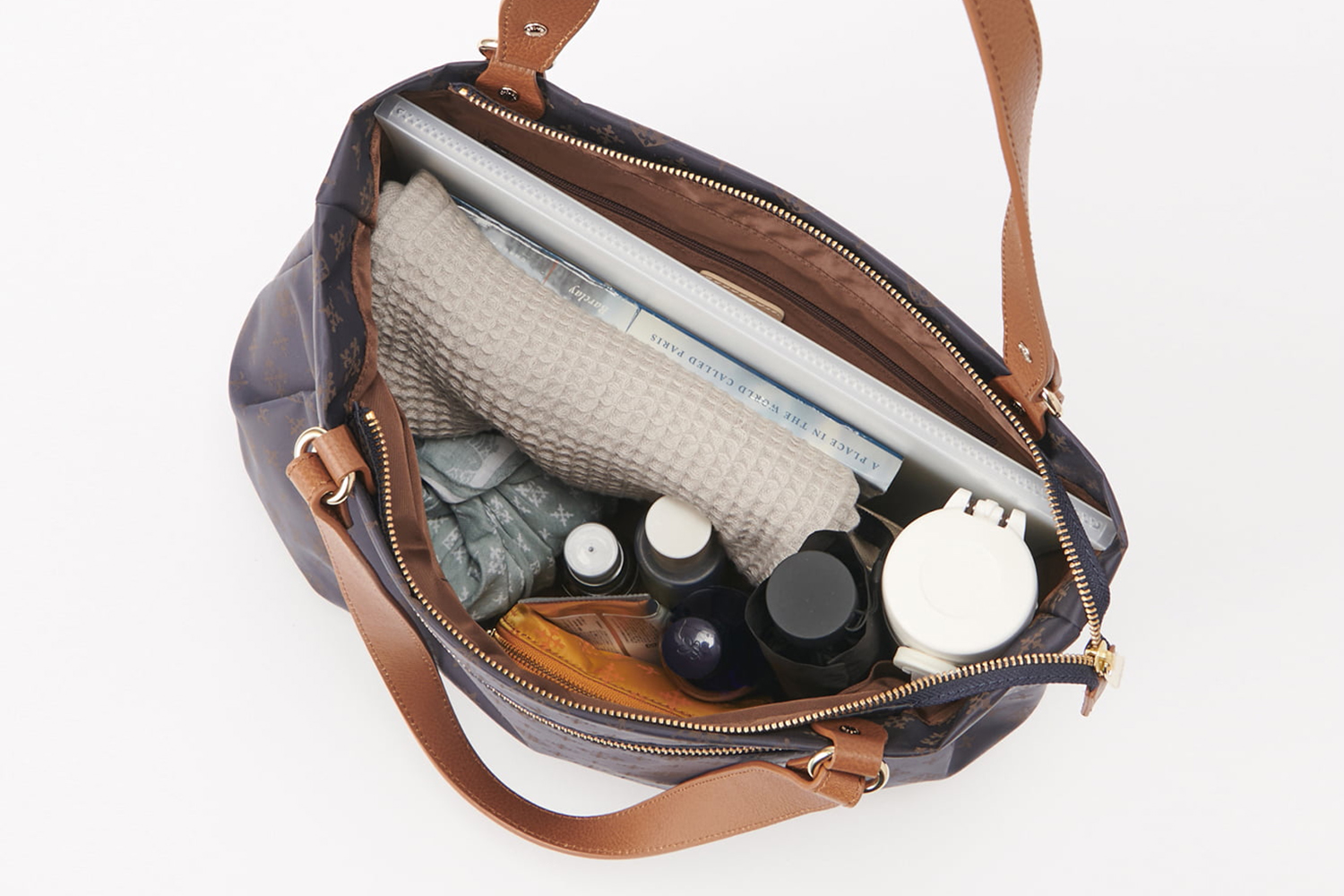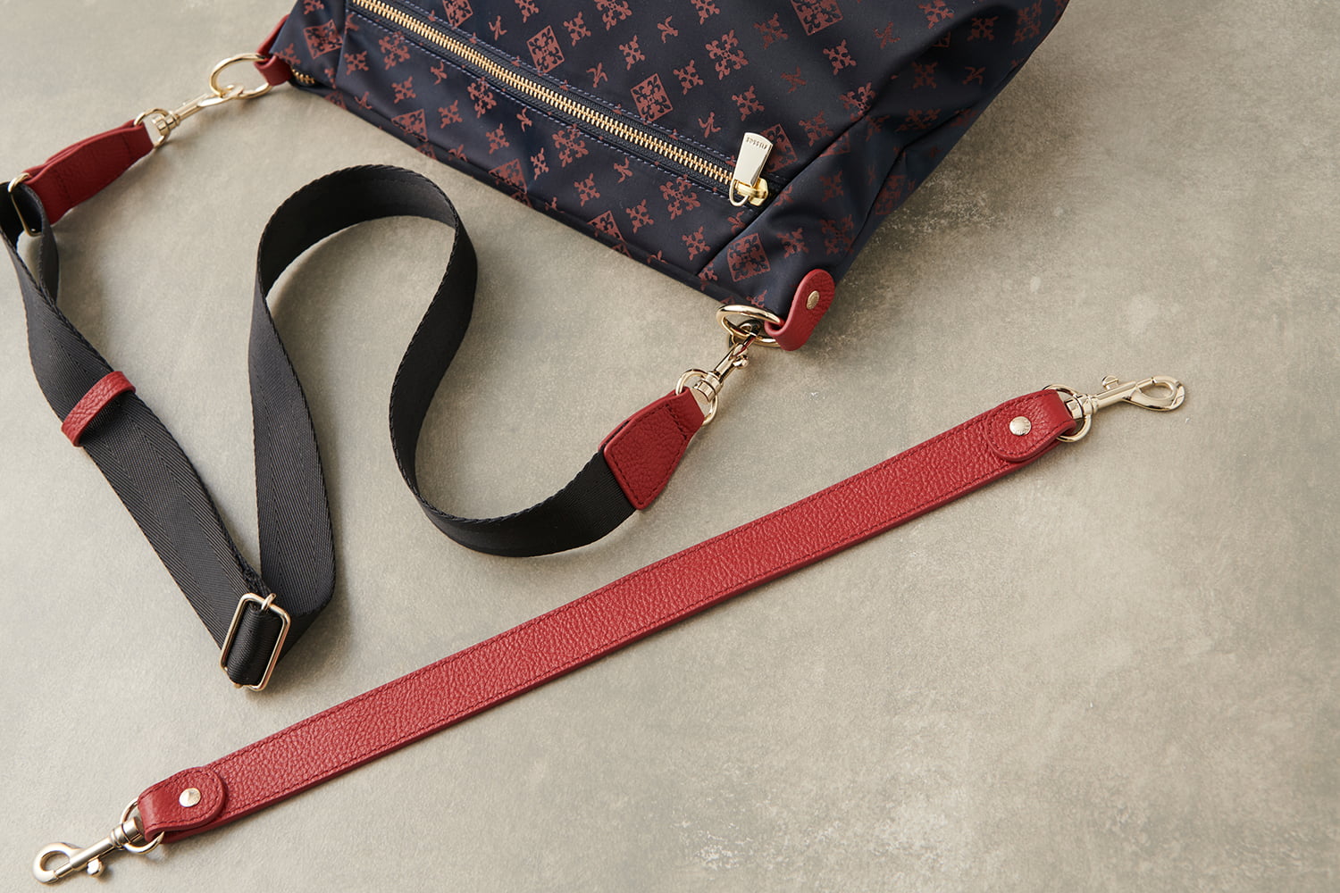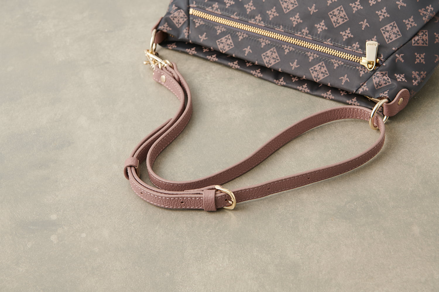 ・レザーのハンドルは太めにし、肩に負担が少なくなるように機能性も考えた仕様に
