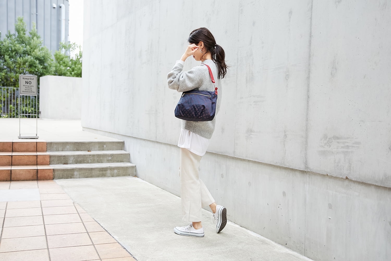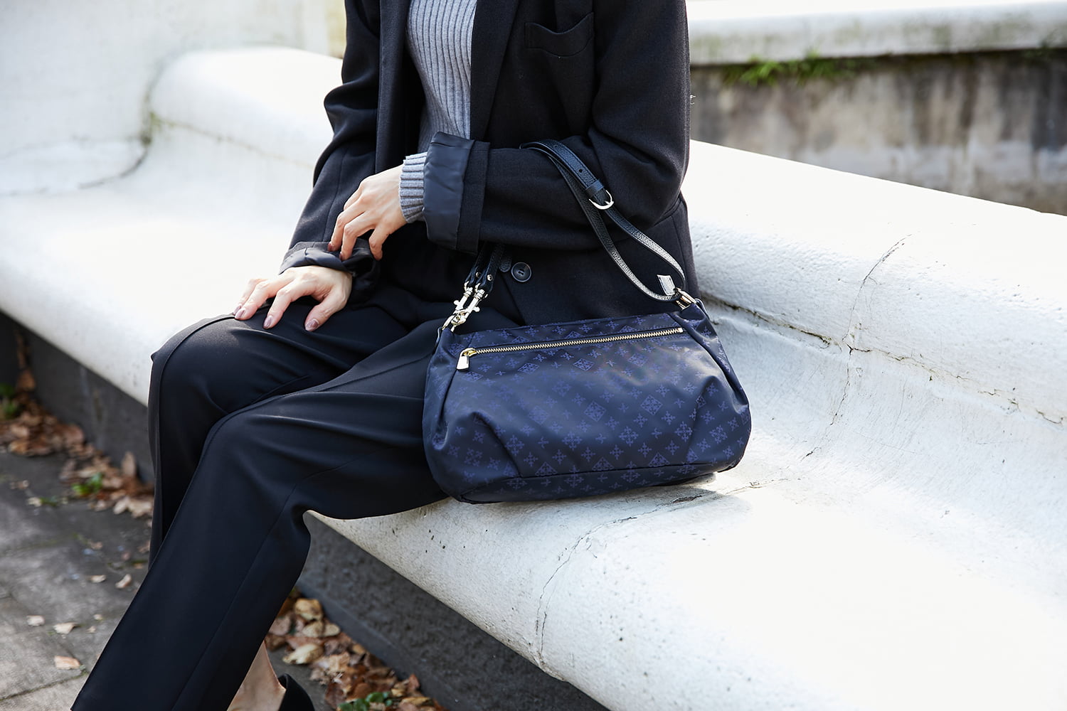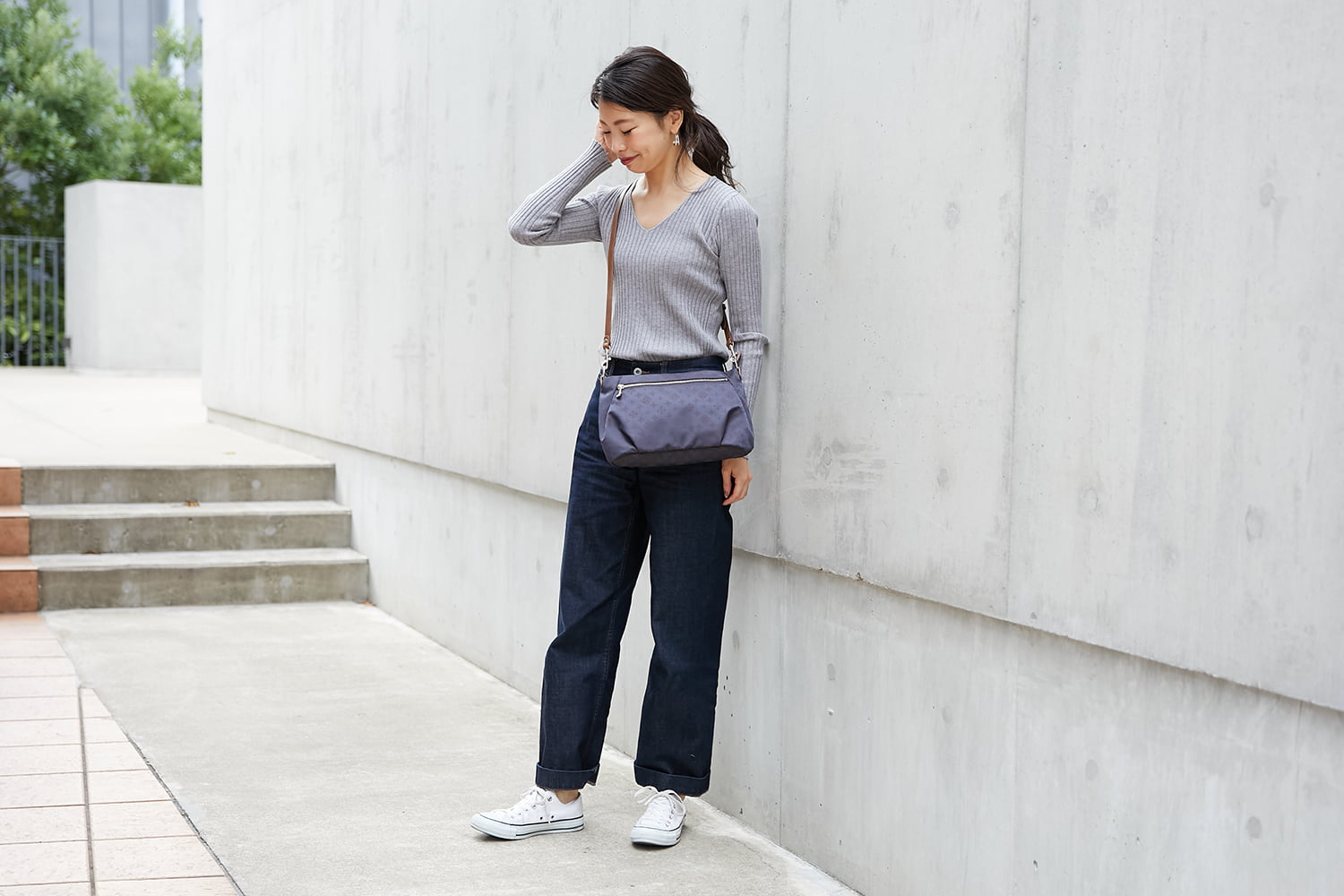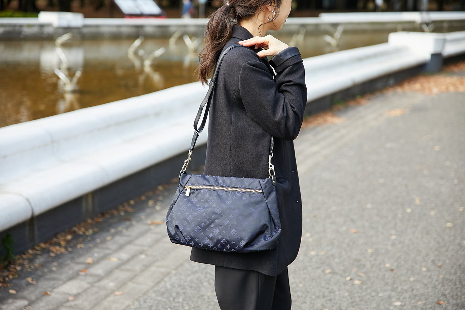 ・ベルトを2重にしてワンショルダーできちんとスタイルにも使える