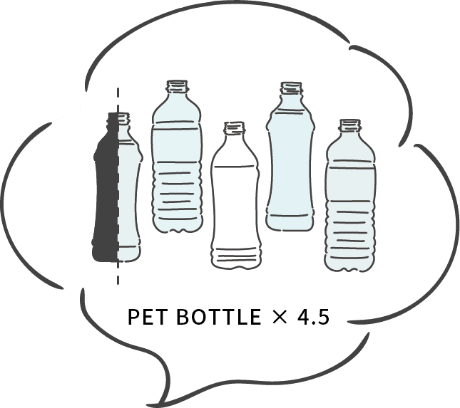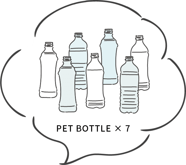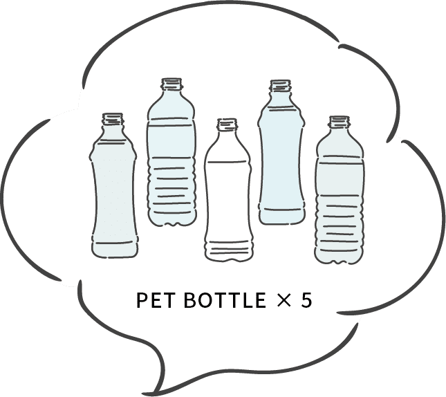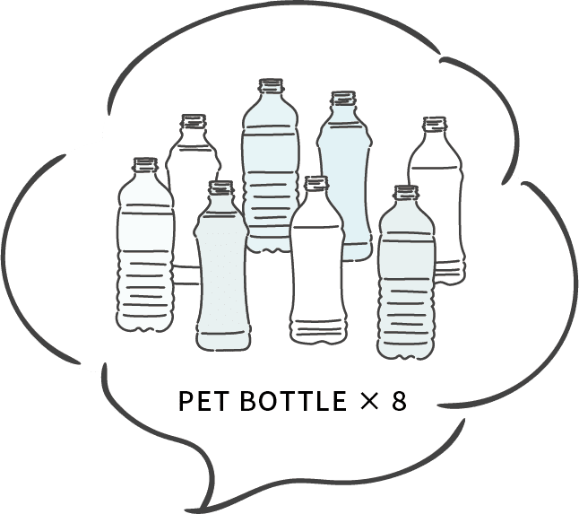 トートバッグ(M)で約5本、一番大きなサイズの丸型のビッグトートバッグで約8本のペットボトル(500ml)を使っています。
