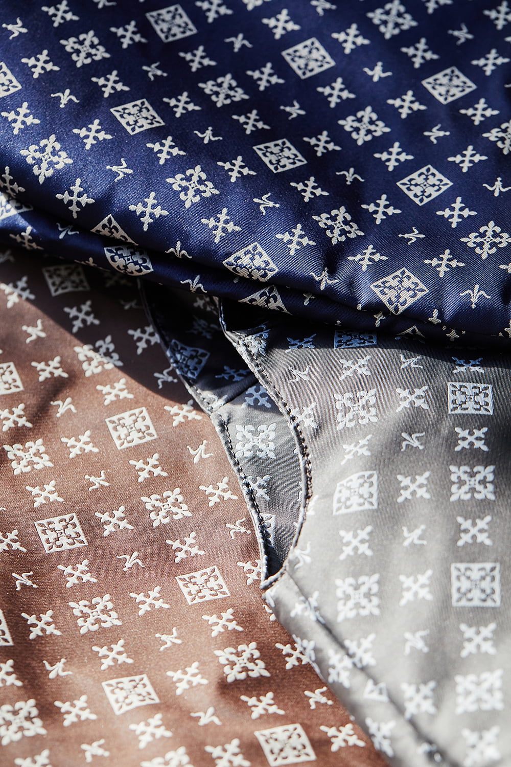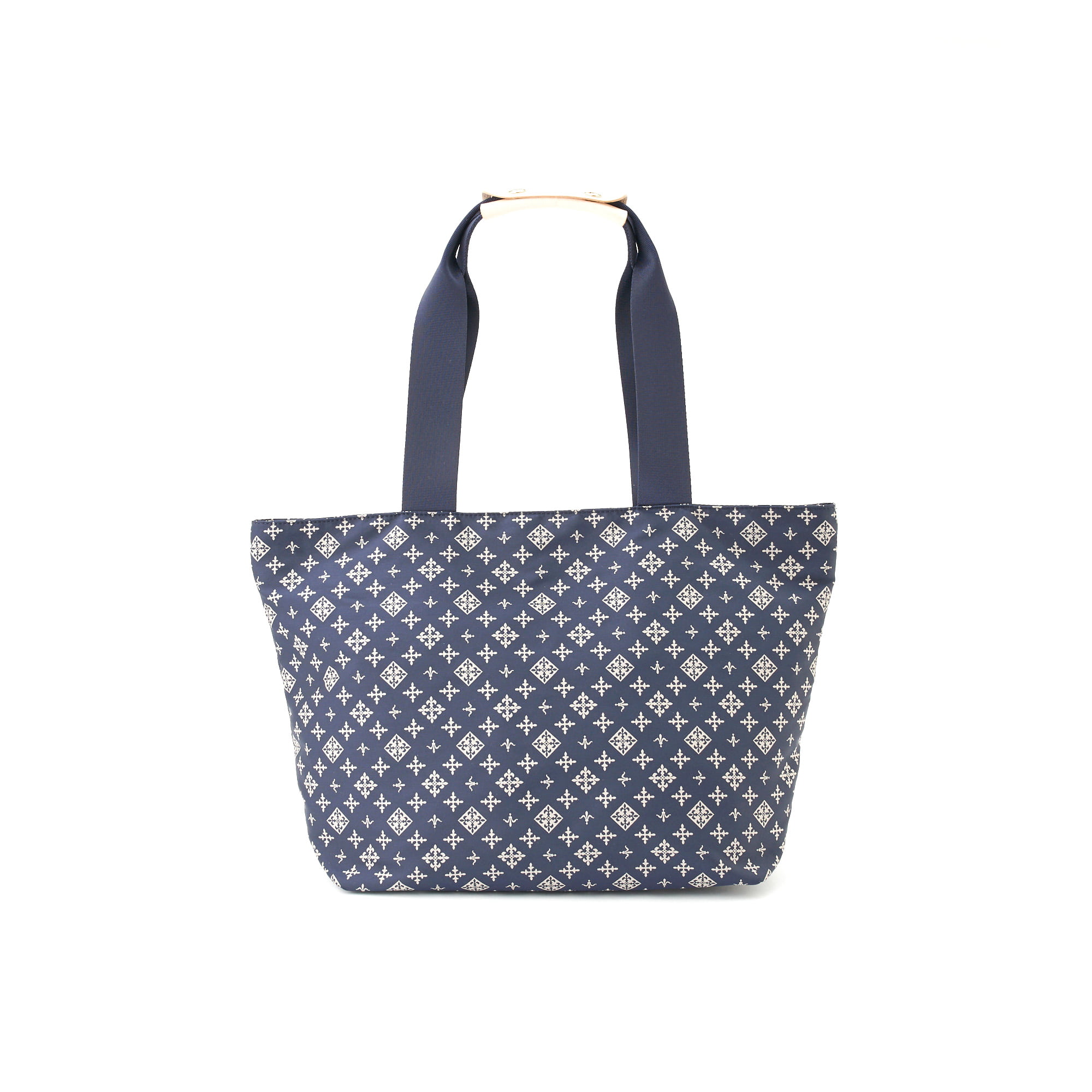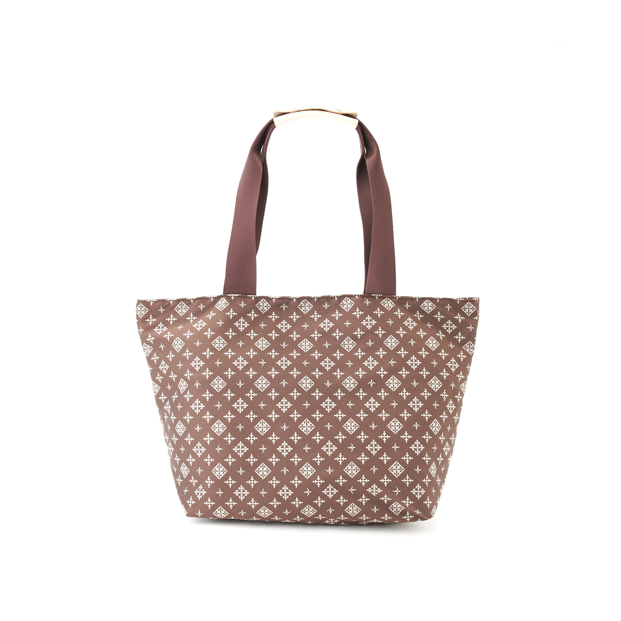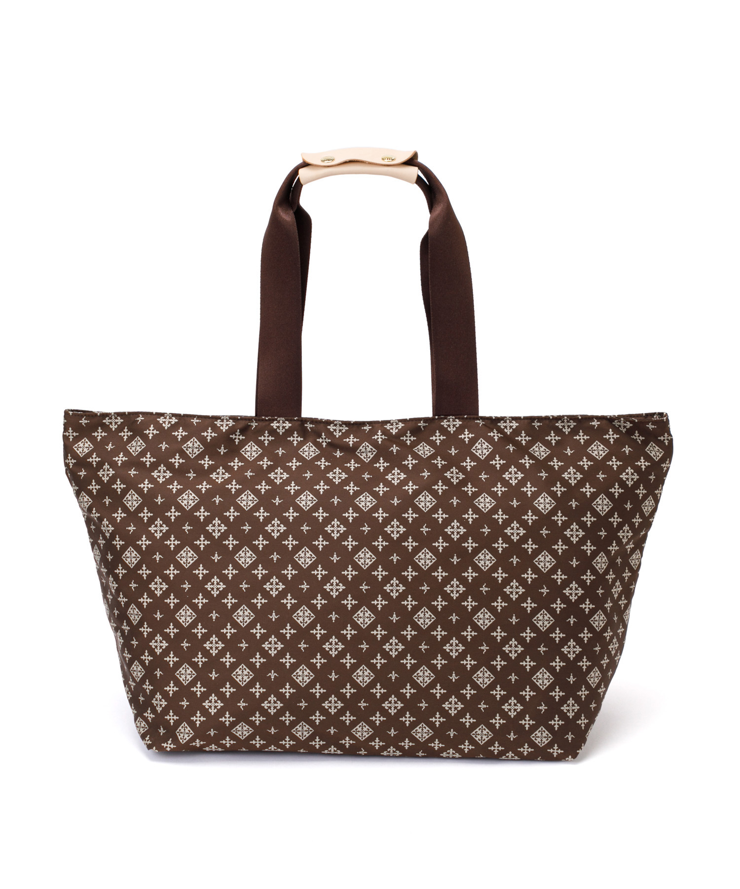 サスティナブルバッグの素材には、100%PETボトルからリサイクルした糸で織った生地を使用。ラシットオリジナルの柄は、タテ糸とヨコ糸を交差させて表現しています。高密度で織られているので、モノグラム柄の細部まで美しく表現できることが特長。独自の技術で耐久性も強化しています。