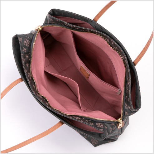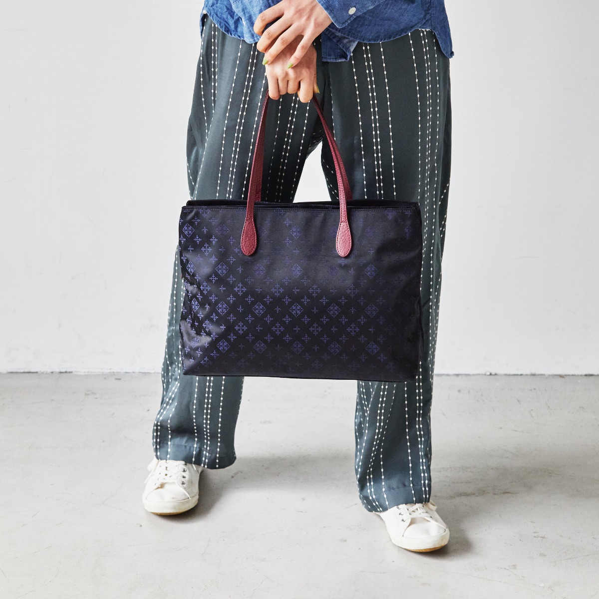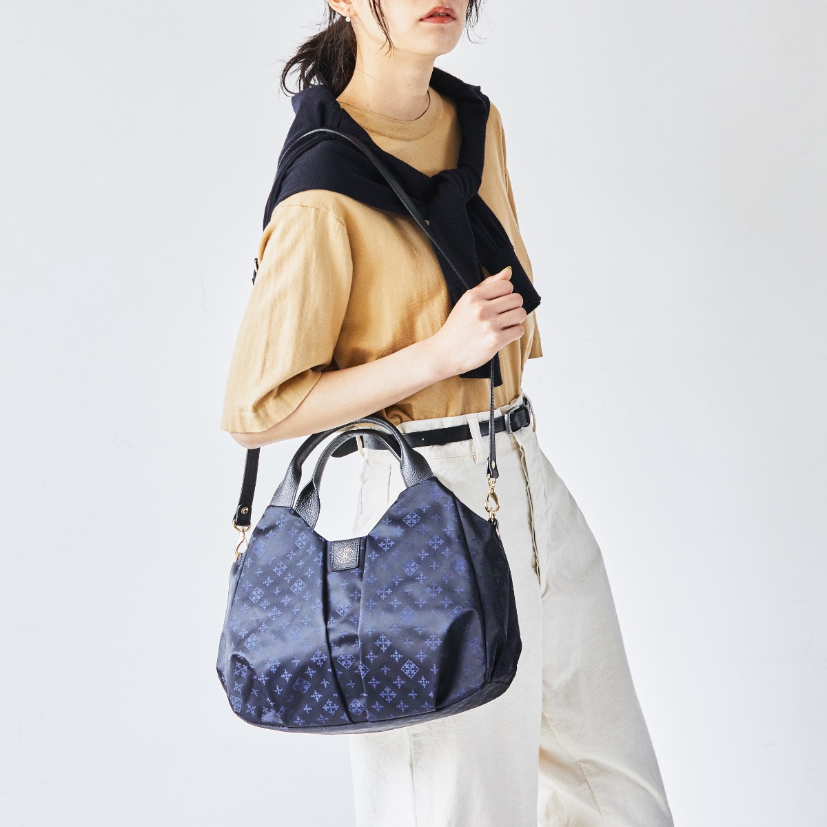 手帳や、お財布、ポーチ、折りたたみ傘なども入り、デイリーユースにぴったりなアイテム。お荷物を多く入れても、きれいなフォルムでお使いいただけます。