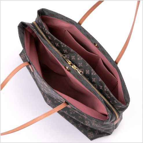 驚きの三層仕様。お荷物を分けて入れていただけるので、書類や貴重品などを整理整頓して収納していただけます。それぞれの開閉口にファスナーやマグネットが付いているので安心!