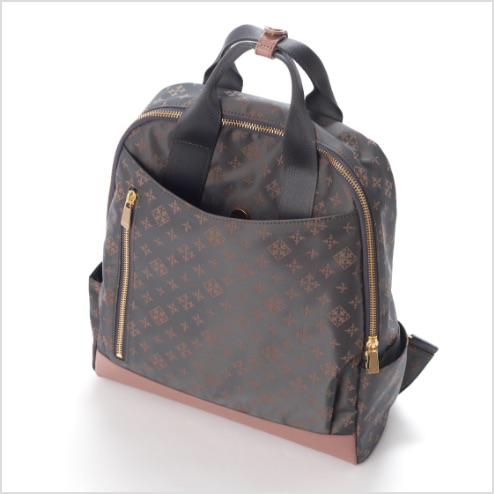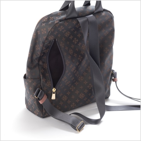 背面にはコイルファスナーポケットを付け、バッグを降ろさなくてもお財布などの貴重品をすぐ取り出しやすい仕様に。