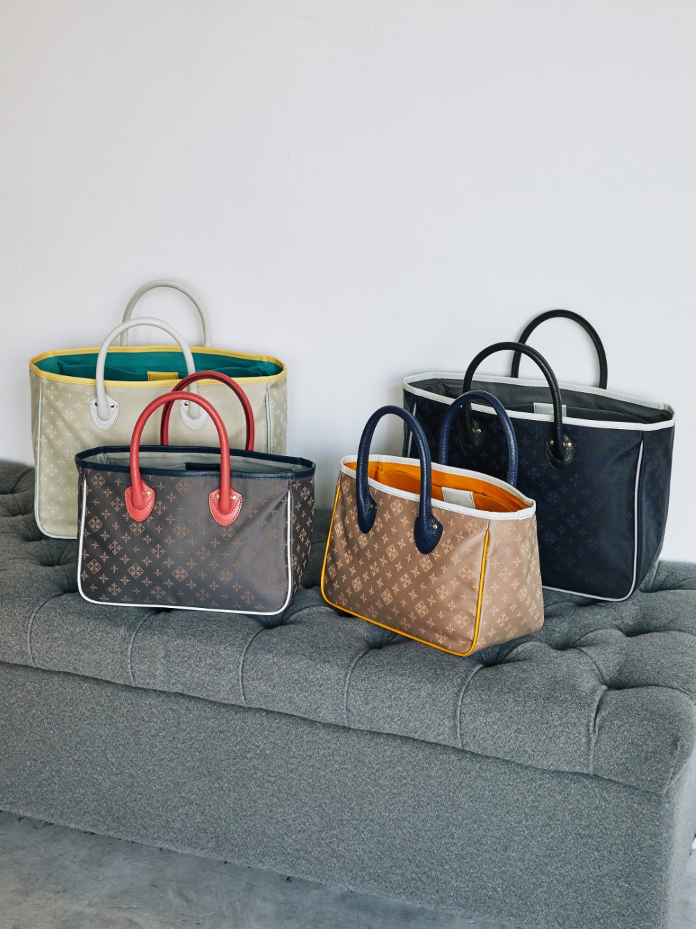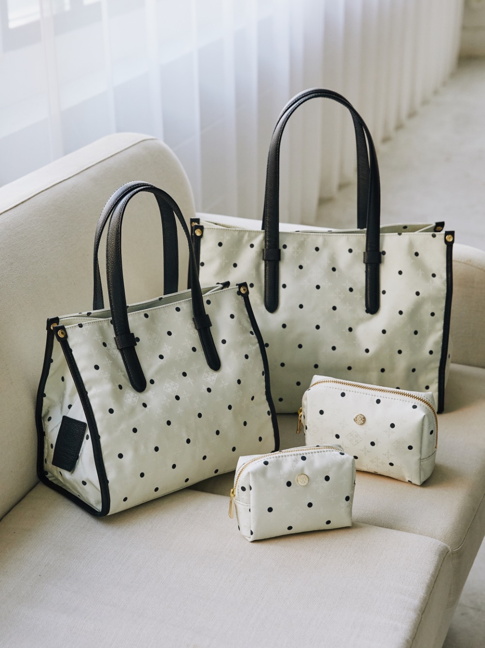 モノグラムのジャカード生地にドット柄をプリントした、贅沢かつキュートな新シリーズ。