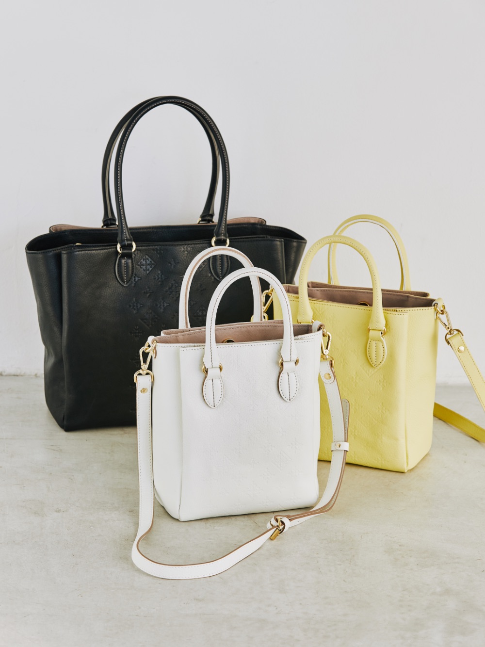 モノグラムを型押しした、きちんとシーンに最適なレザーバッグとお財布がラインナップ。 新生活に向けていち早くチェックして!