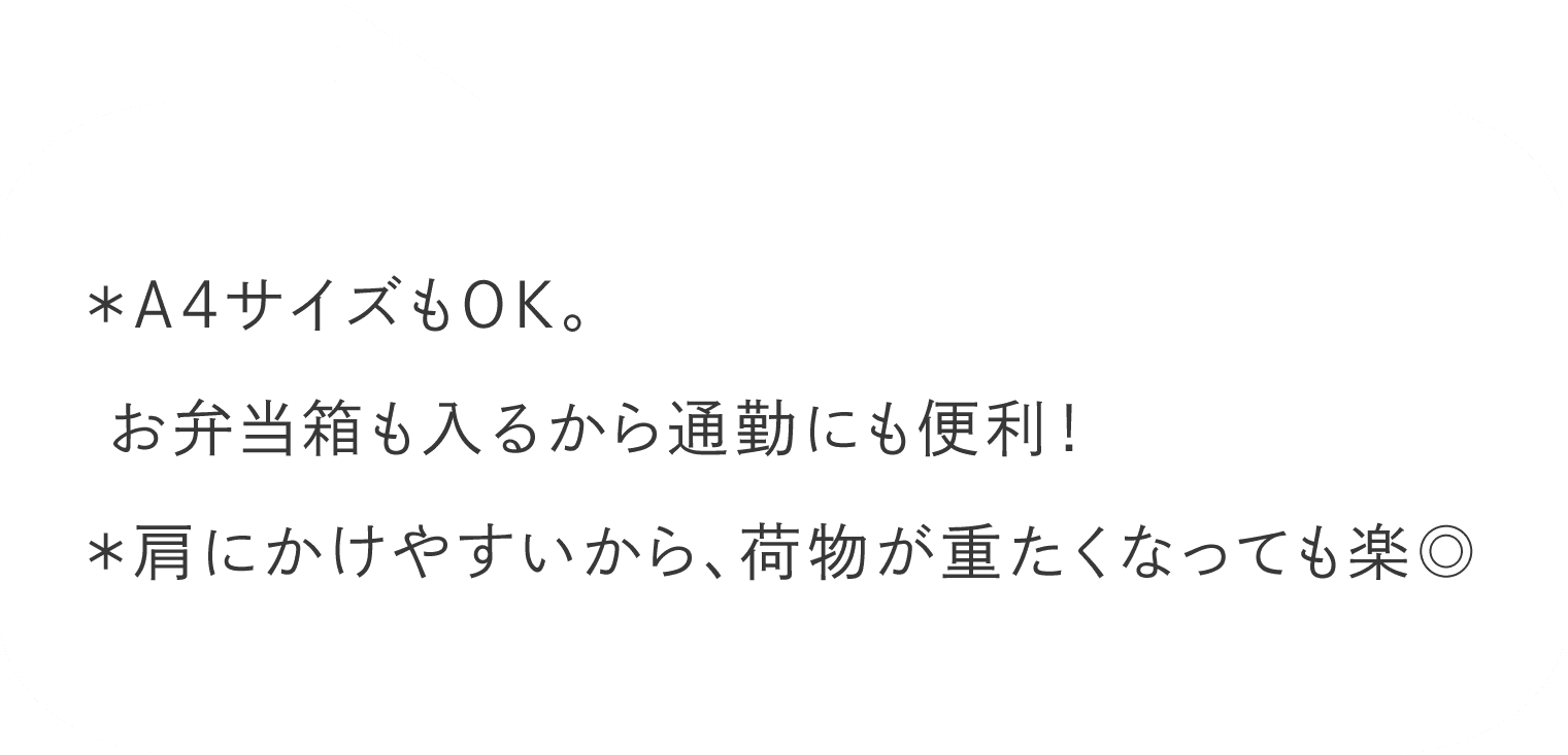 A4サイズの書類や500mlのペットボトルをすっきりと収められる容量。それでいて持った時に大きく見えすぎない、絶妙なサイズ感にこだわりました。