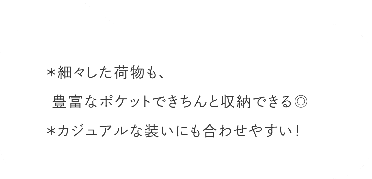 レジや改札でさっと取り出したいけれど、バッグの中で迷子になってしまうことも多いスマートフォン。背面側のポケットをスマホの定位置にすればスムーズな出し入れが可能です。