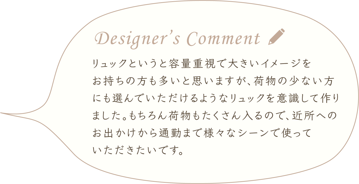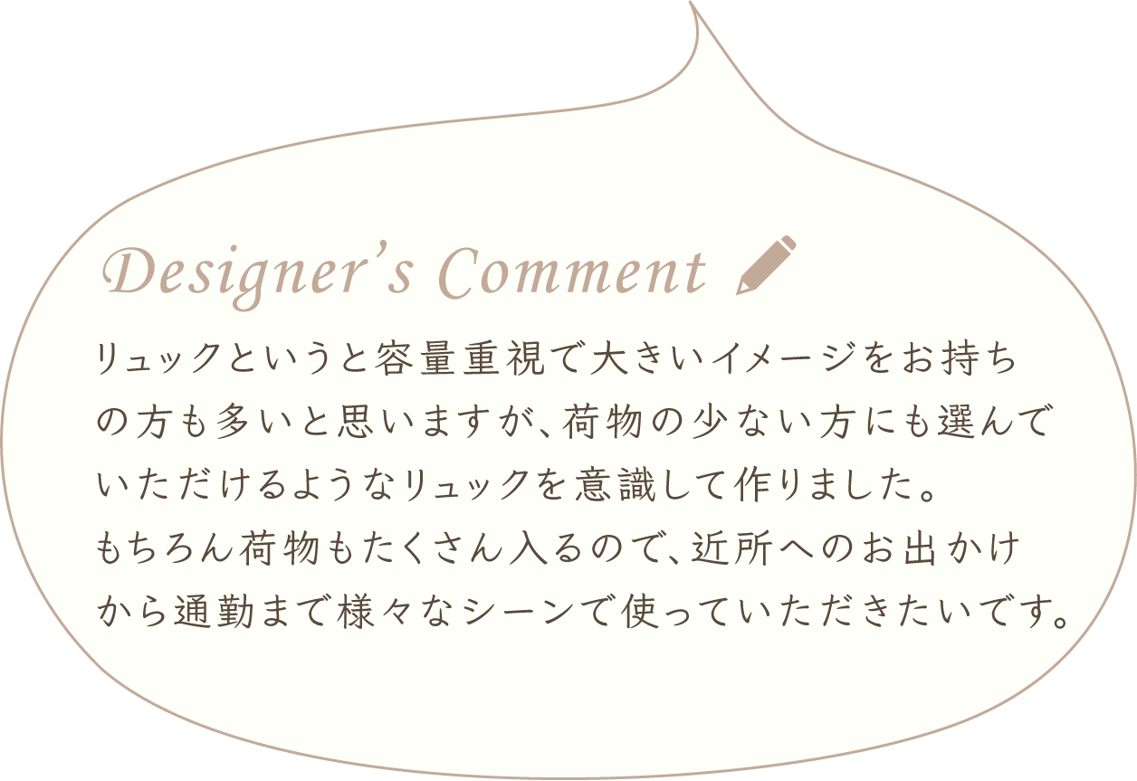 普段リュックを持たない方にもおすすめしたいデザイン。