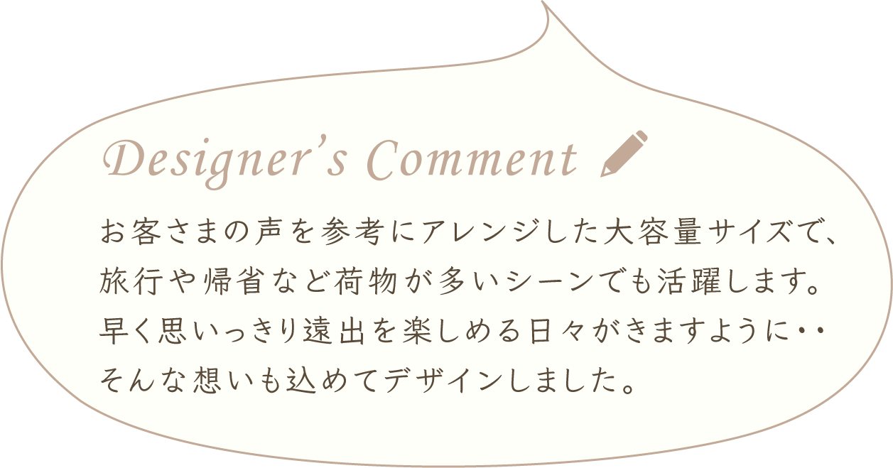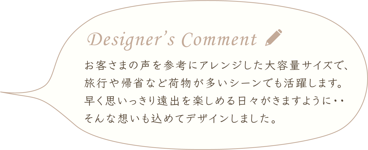 荷物をたくさん入れてもすっきりとまとまるよう計算されたラインで背負った姿も美しく。