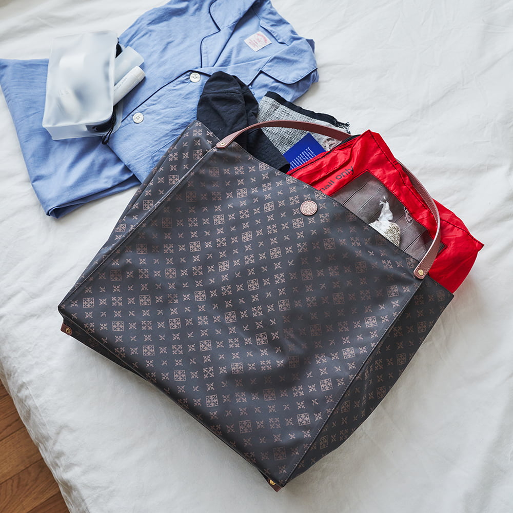 たった340gと軽量ながら、容量に合わせて表情の変化を楽しめる万能なトートバッグ。