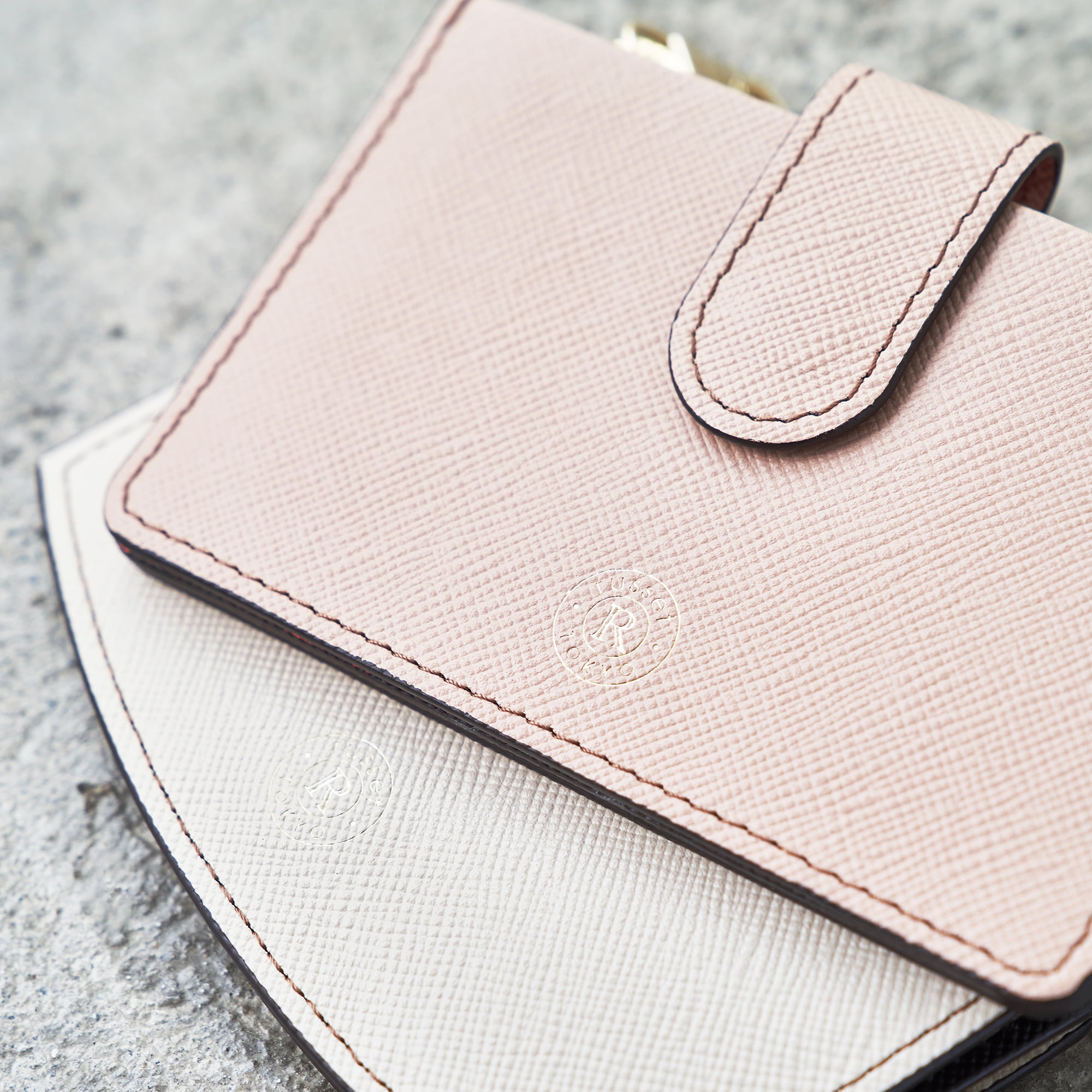 牛革を薄くすく加工をし、厚みをおさえてすっきりとした印象に仕上げました。毎日持ち歩けるよう、重さも軽減。表面に型押しをして、表情豊かな奥深さを表現しています。箔押しのロゴマークがさりげない上品さをプラス。