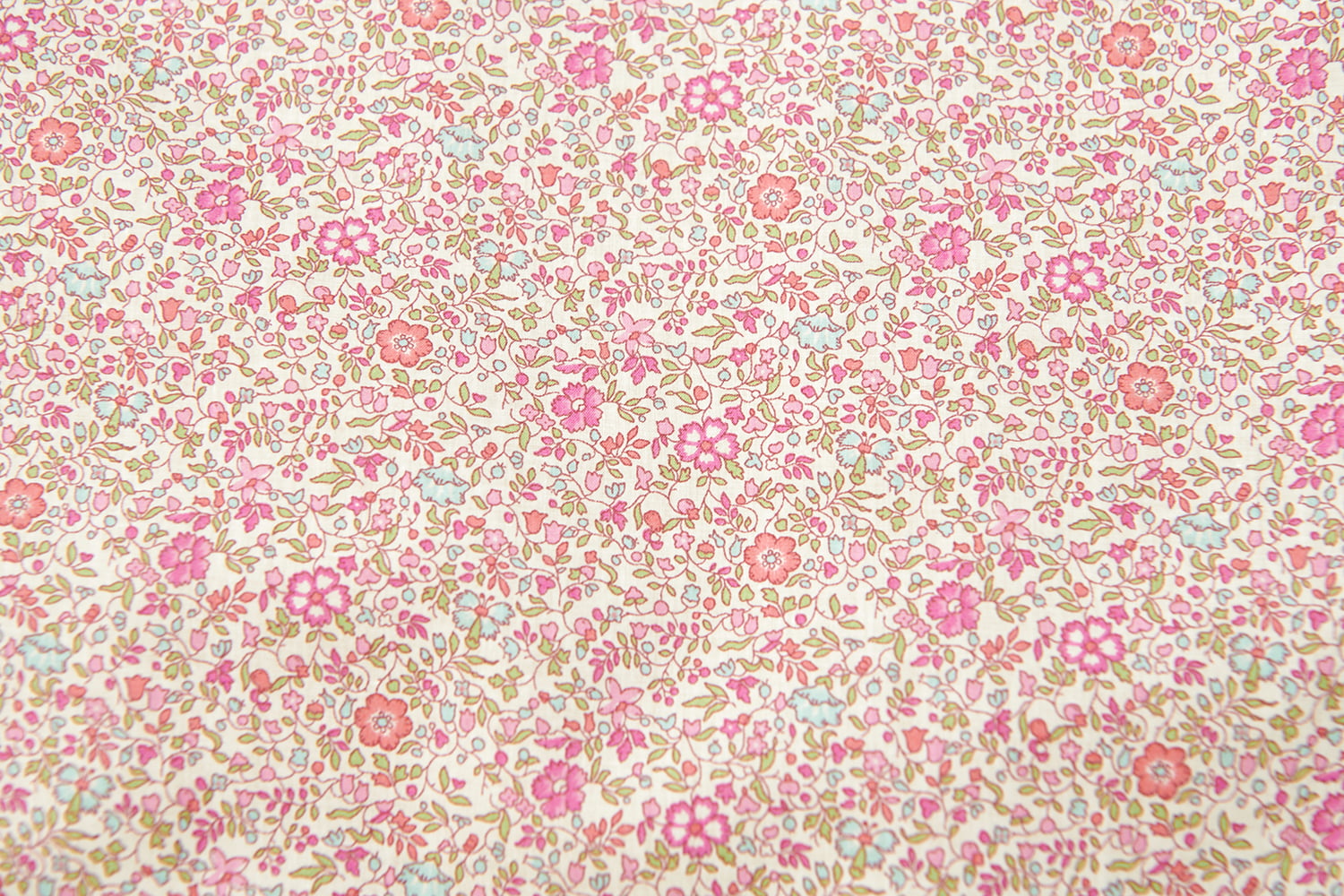 繊細な小花柄が目に鮮やかなピンクは、優しく柔らかな印象に。