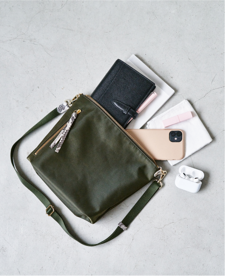 ショルダーバッグ一つで身軽なお出かけを楽しんでいただけるよう、小さいけど必要な荷物はしっかり収納できるようにこだわりました。