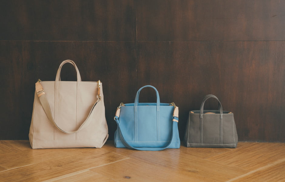 キャンバス生地に効かせた 白ステッチがデザインのポイントに