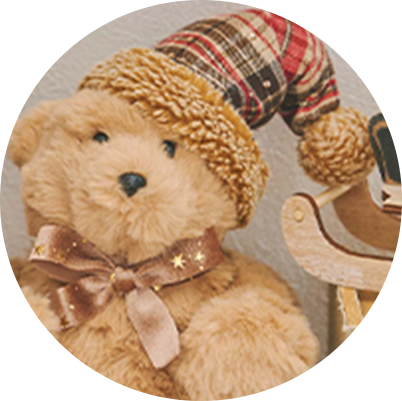 お出迎えしましょう。キュートなクリスマスベアも歓迎しています!