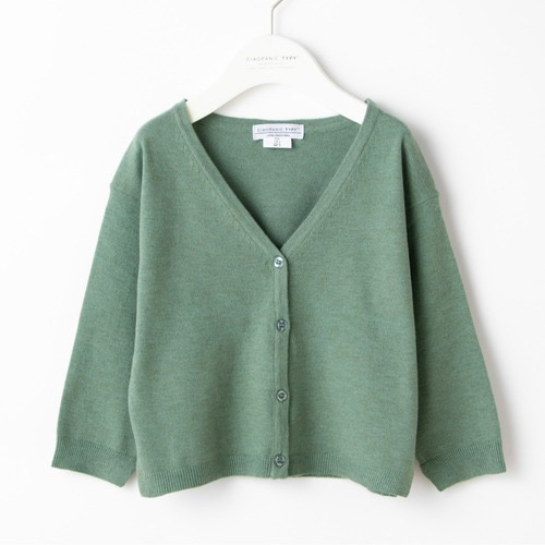 同色で揃えたり、色違いにしたり、時には、ニットとカーディガンで色を変えるのも可愛い。