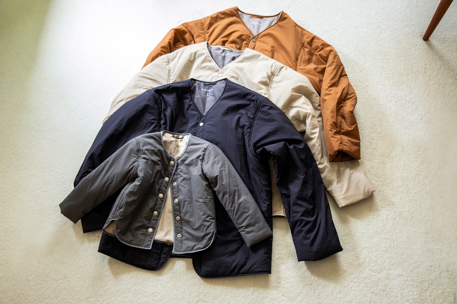 メンズ・キッズ・レディスで展開しているウォッシャブルアウターは、軽い・洗える・速乾性・ストレッチというハイスペックさ。さらに着膨れせずスッキリ着られるところも、ノーカラーという点も便利。真冬はこれをインナーにして、上にコートを羽織っても良さそう。合わせやすいカラーリングも魅力。
