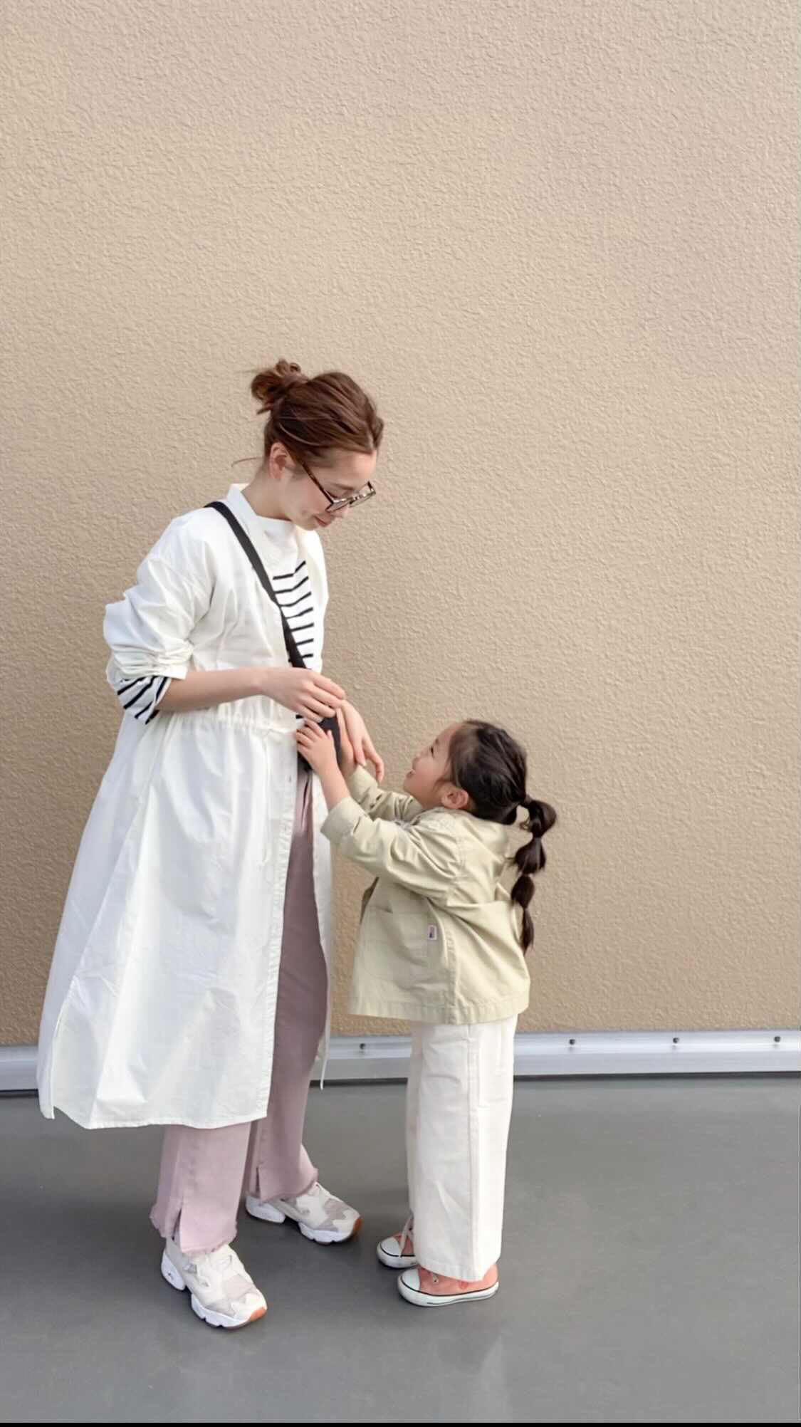 親子で @ciaopanictypy 👩👧 シャウター(シャツアウター) シャツよりも生地感しっかりしていてウエストに紐がはいっているから少し絞ったりしても🙆♀️ ピンクのデニムもウエスト後ろ部分がゴムになっていて こりゃ、楽ちん🤫 私のリアル公園コーデかな😊 りこのアウターも今の時期にちょうどいい生地感で 半袖に羽織ったりしてもよさそう! サロペットもかわいかった〜🤍