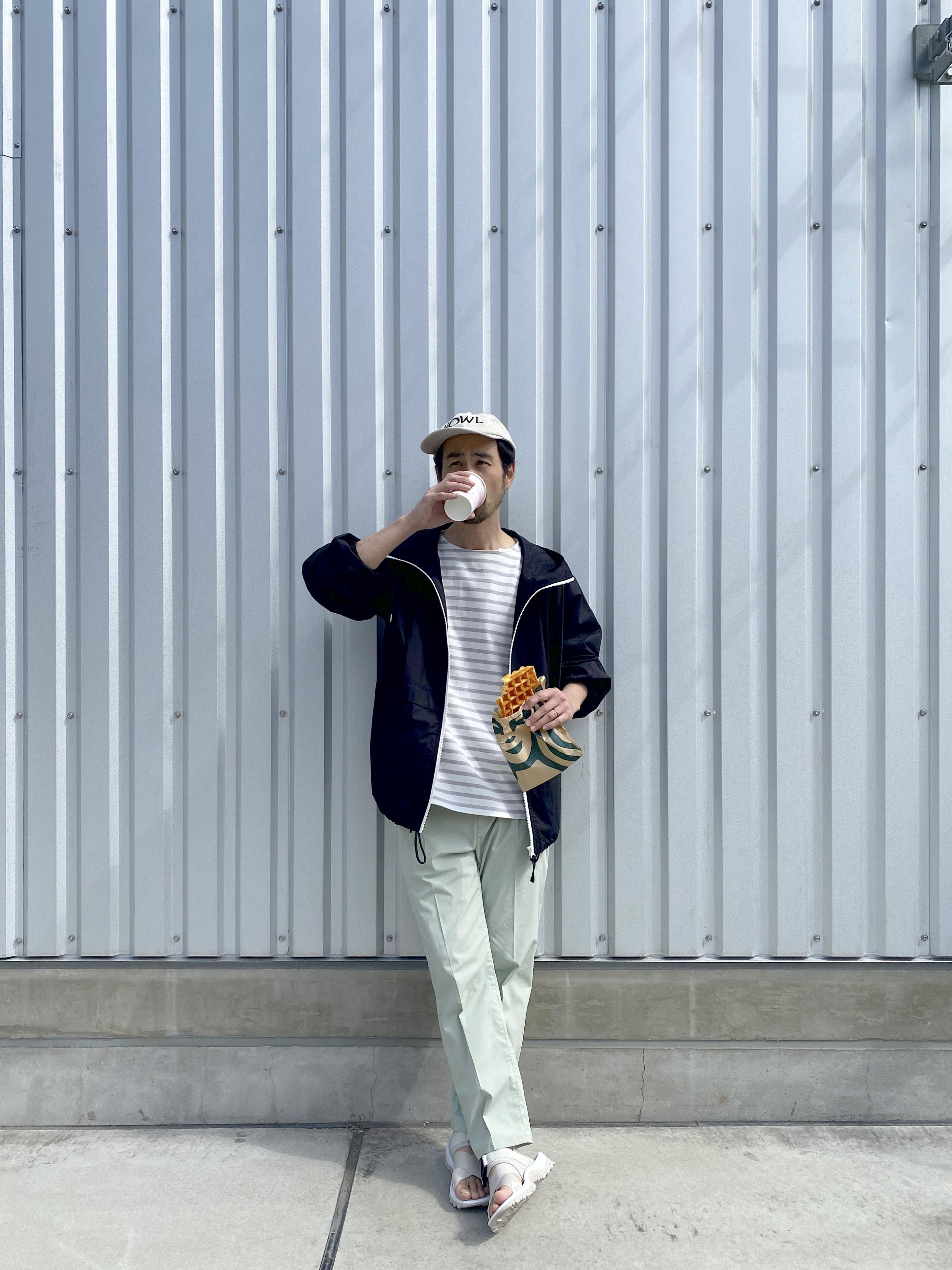 さわやかな見た目と着用した時の着心地は40代の僕の休日テンションを上げてくれる♪ とても軽くて、ノンストレスで暑くなり脱いでもしわになりにくいから、トートにガサッと入れられちゃうのも〇 カジュアルなアウターなので、すっきりと細身のきれい見えするボトムスと合わせ大人らしさを意識しました! 高見えするこのシャウターはお値段以上の価値がありますね♪