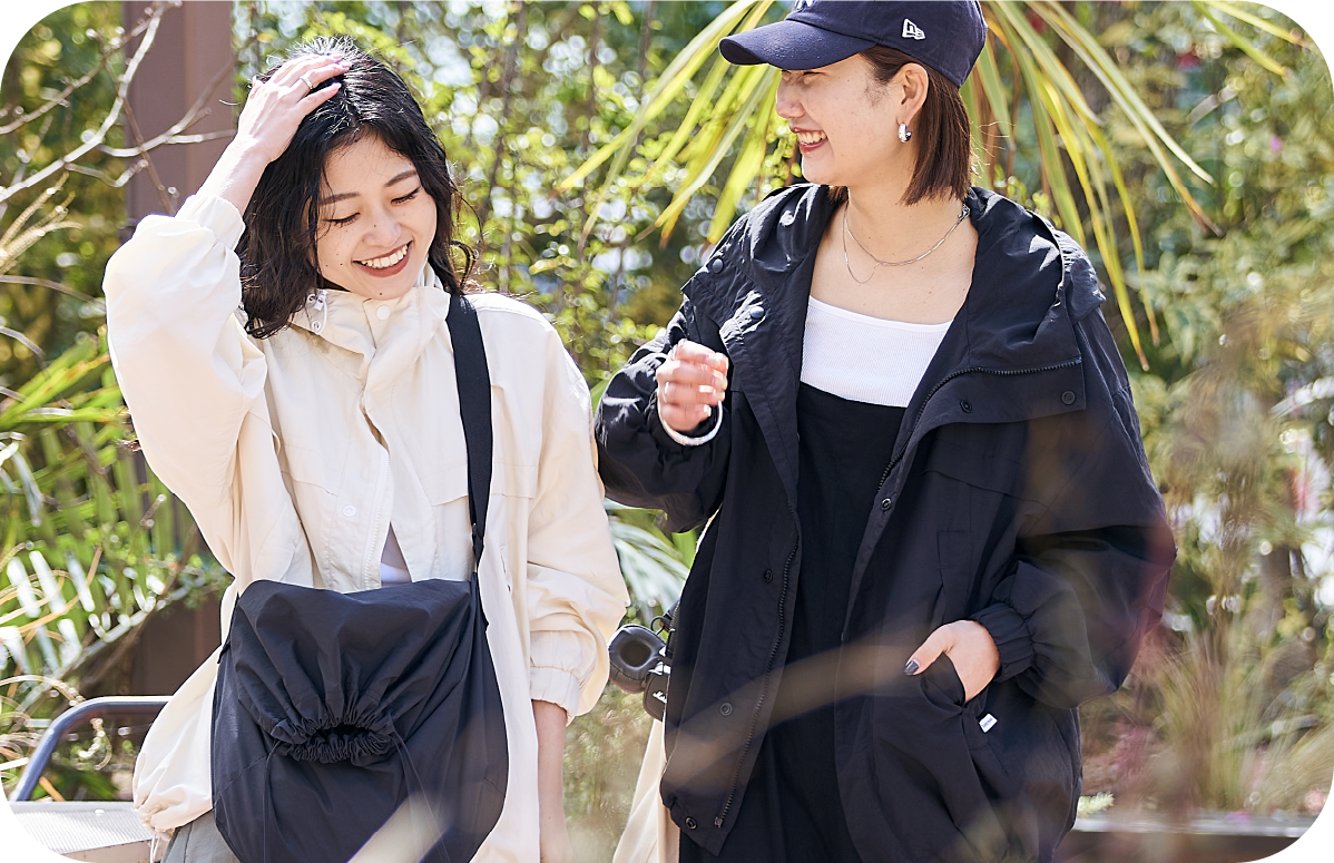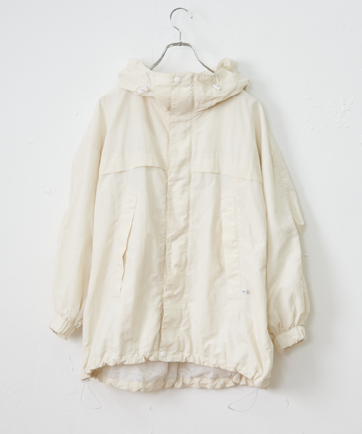 オーバーシルエットがトレンド感の溢れるマウンテンパーカー。後ろのギャザーや、裾のドローコードで丸みを帯びたシルエットにアレンジできます。撥水機能があり、裏地はメッシュなので梅雨時期にぺたぺた肌に張り付きにくく、UVカット機能も兼ね備えています。カラーはソルト(ホワイト)、ピーナッツ(ベージュ)、インク(クロ)の合わせやすいカラーで展開しています。