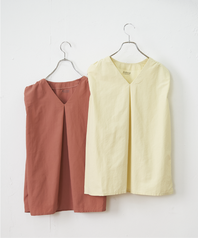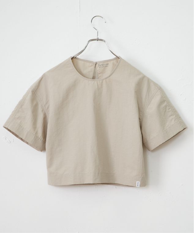 肩のタックが程よく二の腕を隠してくれて、着やせ効果が期待できるシルエットに仕上げました。すっきりとしたIラインシルエットで夏のアクティビティに持ってこいの1枚です。水着やヨガウェアの上にバサっと羽織っても◎うれしいUVカット機能があり、よく伸びて肌触りの良い生地を使用しています。肌になじむピーナッツ(ベージュ)やソイル(ブラウン)、インク(クロ)の大人っぽいカラーで展開しました。