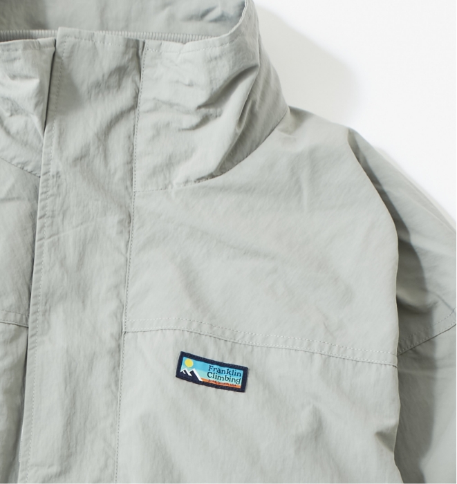 レトロアウトドアをテーマに掲げたFranklin Climbing を代表する素材、『フランクリンナイロン』を使った、 アウトドアシーンには欠かせない「マウンテンジャケット」です。 UV・撥水機能だけでなく接触冷感機能も備わっており機能性抜群のアウターです。 襟元の吊り紐には、レッドスピンドルをあしらい着脱時にもオシャレなアクセントになっております。 ブランドを代表するアイテムとしてキッズサイズも展開しております。