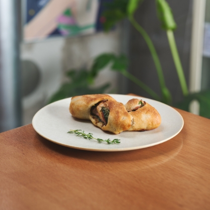 オリーブとアンチョビの塩味がじゅわっと弾けるビールにぴったりなころんとしたパン