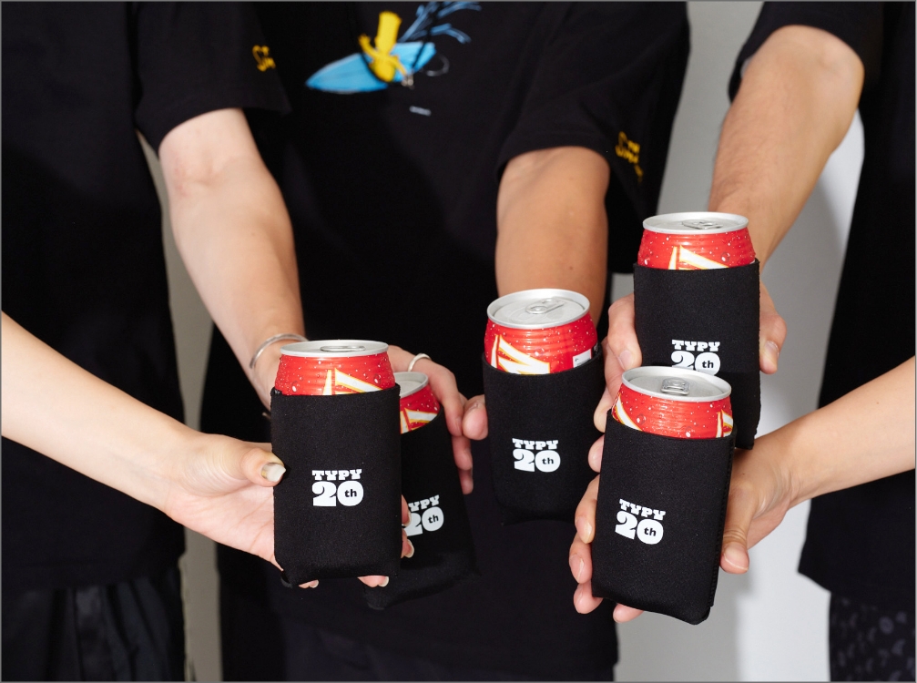 フロントにはスケートボード・サーフィン・バスケットボール・サッカーのデザインをプリント。バックにはTYPY20thを記念したアートワークがプリントされた特別仕様。しなやかな肌触りと優しい風合いが特徴的なコーマ天竺で着心地もよくお子様も安心。