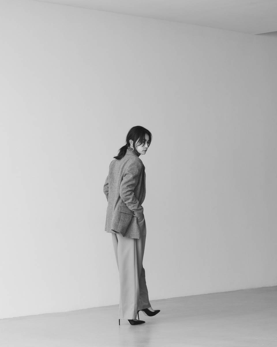 そして、もうひとつ、私が大切にしたのは、インテリジェンス。大人の女性は、知性がなければ、綺麗にも素敵にも見えないから。私好みの女性像は、ボーイッシュな中にふと立ちのぼる「匂い」のある人。暗がりに差し込む密やかな光は、思いのほか眩しく感じるように、女らしさを押し出そうとしていないからこそ、艶っぽさが薫る服がいい。