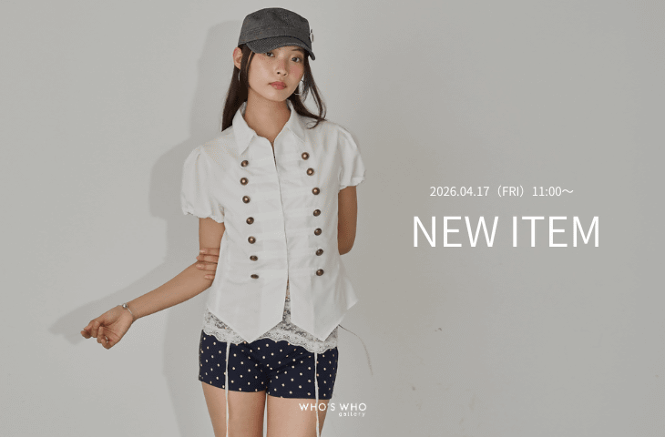 あなたにおすすめのアイテム ブランド 商品名 NEW 再入荷 手洗い可 ツイルレースマイクロショーツ ¥7,920 NEW 再入荷 TIME SALE サテンドットサロペット ¥7,425 (10%OFF) NEW TIME SALE 予約 ファーベルトサンダル ¥8,910 (10%OFF) NEW TIME SALE 予約 【WEB限定】ハトメオフショル半袖トップス(無地/ドット) ¥4,851 (10%OFF) NEW TIME SALE 予約 【WEB限定】ハトメホルターレイヤード半袖トップス(ドット/無地) ¥4,851 (10%OFF) NEW TIME SALE 予約 デフォルメレースロゴチビT ¥4,851 (10%OFF) NEW Carhartt OG DETROIT JACKET DARKUSEDWASH ¥44,000 NEW Carhartt OG DETROIT JACKET BURST WASHED ¥46,200 NEW Carhartt OG DETROIT JACKET ¥41,800 NEW Carhartt BELMAR BUCKET HAT ¥13,200 1 NEW WHO’S WHO gallery 【新色追加】2WAYドットスタッズリンプバッグ 7,920 2 再入荷 WHO’S WHO gallery アイレットホルターレイヤードトップス(無地/ボーダー/ドット) 5,720 3 WHO’S WHO gallery ナポレオンデニムジャケット 14,300 4 手洗い可 WHO’S WHO gallery ナポレオンコンパクトシャツ 7,920 5 SALE 手洗い可 WHO’S WHO gallery FromVintage ファティーグジャケット 8,800 (46%OFF) 6 SALE WHO’S WHO gallery 【HiNT】ベルトストラップミュールパンプス 7,700 (21%OFF) 7 NEW 再入荷 WEB限定 WHO’S WHO gallery 【WEB限定】ナポレオンナローカーデ 6,930 8 NEW 手洗い可 WHO’S WHO gallery ナポレオンパフスリブラウス 7,590 9 一部予約 WHO’S WHO gallery レースガータートップス 6,600 10 WHO’S WHO gallery スタッズリブカシュクールフーディ 5,940 STAFF STYLING 店舗名 スタッフ名 SNSで人気!今買うべき!オススメの春アイテム WHO’S WHO gallery ナポレオンデニムジャケット ¥14,300 手洗い可 WHO’S WHO gallery ナポレオンコンパクトシャツ ¥7,920 手洗い可 WHO’S WHO gallery プロセストレースアップトップス ¥5,940 WHO’S WHO gallery アイレットショートPジャケット ¥14,300 NEW WEB限定 WHO’S WHO gallery メッセージドットリングヘンリートップス ¥5,940 一部予約 WHO’S WHO gallery レースガータートップス ¥6,600 アウターの中に着れる人気のトップス WHO’S WHO gallery スタッズリブカシュクールフーディ ¥5,940 手洗い可 WHO’S WHO gallery スタースタッズラグランロゴトップス ¥5,940 WHO’S WHO gallery アイレットオフショルトップス ¥5,940 再入荷 WHO’S WHO gallery アイレットホルターレイヤードトップス(無地/ボーダー/ドット) ¥5,720 手洗い可 WHO’S WHO gallery 【WEB限定カラーあり/ドット柄】レイヤードヘンリートップス ¥5,390 SALE WHO’S WHO gallery リングドットL/Sトップス ¥3,300 (23%OFF) 一部予約 WHO’S WHO gallery シャーロットパターンメッシュトップス ¥5,390 WHO’S WHO gallery スプレーロゴレイヤードシアートップス ¥4,620 今1番売れている人気のボトムス 手洗い可 WHO’S WHO gallery アイレットローライズデニム ¥9,900 WHO’S WHO gallery レースショートパンツ(無地/ドット/チェック/レオパード) ¥6,600 NEW 一部予約 WHO’S WHO gallery 【SLOPPY/スロッピー】リブショートパンツ ¥4,620 再入荷 手洗い可 WHO’S WHO gallery スラッシュポケットデニム ¥9,790 手洗い可 WHO’S WHO gallery デニムタイトフレアパンツ ¥9,790 WHO’S WHO gallery スラッシュポケットウォッシュドスウェットイージーパンツ ¥8,250 手洗い可 WHO’S WHO gallery アイレットスウェットパンツ ¥8,800 春は小物からオススメ雑貨 NEW WHO’S WHO gallery 【新色追加】2WAYドットスタッズリンプバッグ ¥7,920 WHO’S WHO gallery ラジアルドットバッグ ¥5,940 NEW 一部予約 WHO’S WHO gallery スタッズショルダーバッグ(無地/ドット柄) ¥6,930 WHO’S WHO gallery カバーウエストベルト ¥4,290 WHO’S WHO gallery ラインストーンワイドベルト ¥3,850 WHO’S WHO gallery メッシューヒールスニーカー ¥9,350 一部予約 WHO’S WHO gallery SLOPPY配色厚底ローファー ¥12,980 再入荷 一部予約 WHO’S WHO gallery 【SLOPPY】スニーカーミュール ¥8,800 スタッフスナップ あなたにおすすめ 人気 新着 ブランド名 店舗名 スタッフ名 ブランド名 店舗名 スタッフ名 ブランド名 店舗名 スタッフ名 ブログ あなたにおすすめ 人気 新着 人気の配信がココでも見れる!インスタLIVE 最新トレンドは動画でチェック!インスタリール オンラインストア 店舗 2026.04.17 NEW WHO’S WHO gallery 【NEW ITEM】 2026.04.16 NEW WHO’S WHO gallery 【PRE ORDER】 2026.04.13 NEW WHO’S WHO gallery 【TOP10】先週の人気アイテム! 2026.03.25 WHO’S WHO gallery ★ STAFF STYLING ★ NAPOLEON COMPACT SHIRT Ver. 2026.01.08 WHO’S WHO gallery スタッフが今狙ってるアイテム8選★ 2025.12.26 WHO’S WHO gallery 【年末年始、何着る?】シーン別コーデ3選! 2025.12.19 WHO’S WHO gallery 【骨格別】スタッフが選ぶオススメトップス3選★ 2025.11.14 WHO’S WHO gallery 【What's in my bag ?】スタッフのリアルバッグの中身! 2025.05.08 WHO’S WHO gallery 【大人気】スラッシュポケットスウェットイージーパンツ徹底解説! 2024.11.08 WHO’S WHO gallery 【PROCESSING PROJECT 24AW OUTER COLLECTION】 現在、ショップニュースはありません。 3COINS 《内側タオル生地》折りたたみ傘ポーチ 330 3COINS グログランリボンバナナ 330 natural couture 【水着】スリット付きロングスカート 5,940 one after another NICE CLAUP シャツドッキング半袖ミニワンピース 12,100 3COINS 立体ガラスフォト